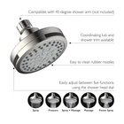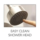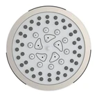 The 594309 Eastport II Contemporary 5-Function Shower Head for Bathroom is the perfect way to add a modern touch to your shower with its sleek shape and simple design. This round, five-function shower head is finished in satin nickel and coordinates with most bathroom fixtures. Add a matching shower trim and tub spout from the plumbing collection. Designed and manufactured by , the trusted source for quality lighting, hardware, plumbing, kitchen, and bath products for every taste and budget. Contemporary, five-function, wall-mounted shower head Uses less water while keeping your shower head pressure high at 1.8 gallons per minute Coordinate this shower head with shower trim and tub spout styles from the plumbing collection Features a satin nickel finish, sleek shape and simple design 5-Year limited /finish
