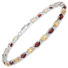 Citrine:Oval/5x3mm 13/2.60 ctw + Garnet:Oval/5x3mm 12/3.36 ctw Specifications: Gem wt. (Carat): 5.96 Gross wt. (gms): 7.34 Height: 0.13 Inches Length: 7.50Inches Metal: .925 Sterling Silver Metal wt. (gms): 6.15 Width: 0.15 Inches