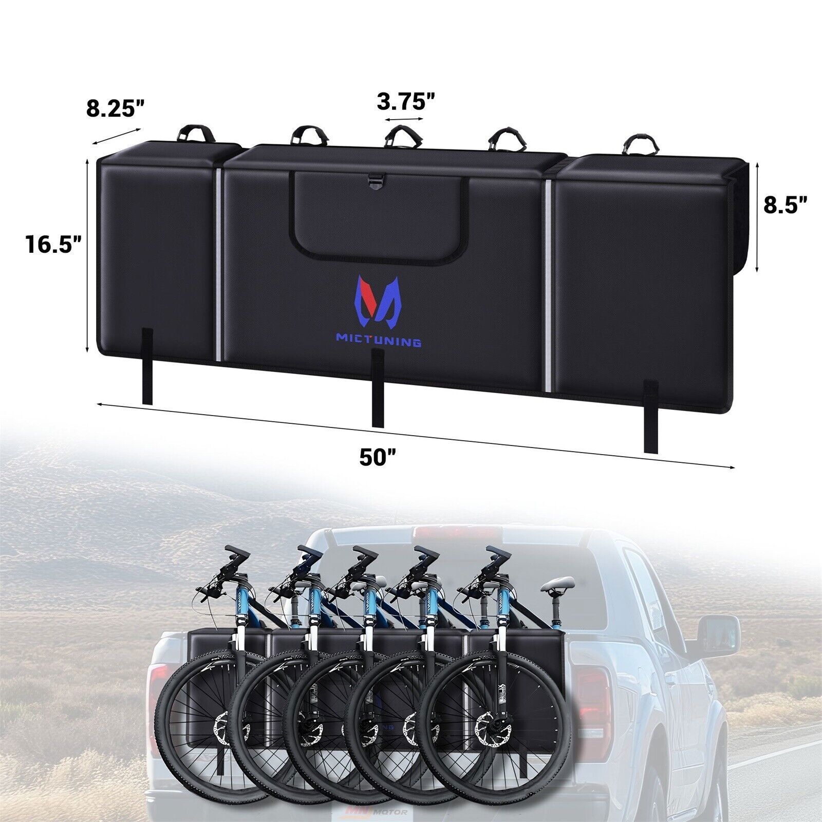 Hot Selling Parts UK Stock-Hot Sale US--LED Rock Lights US--Light Strip US--Swtich Panel US HOT SALE Tailgate Bike Pad for 5-Bike Racks Pickup Truck Bed Tailgate Protector Cover US MICTUNING Tailgate Bike Pad for Mountain Bike, Secure 5 Bikes on Truck, with Reflective Strips and Tool Pocket, for Outdoor Bicycle Transportation About the item: Secure Transport for up to 5 Bikes - Our 50"L X 16.5"H X 8.25"D Tailgate Pad Features Adjustable Straps That Hold up to 5 Bikes Firmly in Place, Protecting Both Your Truck and Your Bikes from Scratches or Damage During Transport Built for All Weather Conditions - Made from 600d Pvc, the Bike Pad's Waterproof and Abrasion-resistant Outer Layer Protects Against the Elements. the Soft Flannelette Inner Layer, Combined with a Thick Shock-absorbing Pad, Ensures Your Bikes Stay Safe and Steady on Bumpy Roads Enhanced Safety with Reflective Strips - High-visibility Reflective Strips Improve Safety During Nighttime or Low-light Trips, Making Your Truck Easily Noticeable to Other Drivers Backup Camera-friendly Design - Features a Roll-up Window That Aligns with Your Backup Camera, Maintaining Full Functionality for Hassle-free Parking and Navigation Tool Pocket on the Back - Keeps Your Repair Tools and Small Accessories Organized and Easily Accessible, Ensuring You're Always Prepared for Your Outdoor Adventures Why Choose the MICTUNING Tailgate Bike Pad? The MICTUNING Tailgate Bike Pad is your ultimate solution for secure bike transportation. It safely holds up to 2 bikes/5 bikes/ with adjustable straps, protecting your truck and bikes from damage. Crafted from durable 600D PVC. Waterproof, weather-resistant, and shock-absorbing. Reflective strips enhance safety in low-light conditions. The convenient pocket keeps tools and accessories within reach. Universal fit and easy installation make it a breeze for any truck owner. Payment Delivery details Terms of sales About us Contact us Payment - We accept internet transfer, bank deposit and all major credit cards through Payoneer. - If you want to delay the payment due to financial issue, please contact us via eBay message within 3 days. Delivery details - ONLY ship to Payment shipping address. Please leave detail address in the order. - As for PR / HI / GU states, please type in "US" on the country blank. - Expedited Shipping is Available, please contact us for more shipment service and postages if needed. Terms of sales International Buyers – Please Note: Import duties, taxes and charges are not included in the item price or shipping charges. These charges are the buyer's responsibility. Please check with your country's customs office to determine what these additional costs will be prior to bidding/buying. When you receive item damaged, defective, not as described or wrong item, please email us with pictures within 48 hours. To resolve any problem better and faster: 1. All labels with clear words on the package are needed. 2. The real goods you received with packing details. 3. Different angles of the products and package to show the problem clearly. Please note we do not accept International Return (For customer who purchase via Global Shipping Program) About us Working Time: - Usually from 9:30 AM-18:00 PM, Monday to Saturday. - Off-duty on Weekends, and national vacations. - We are committed to solve all issues in a friendly and satisfactory manner. - Thanks for your supporting. Your good feedbacks and product reviews are much appreciated. Contact us - Anything needed help, please contact us via message before opening a request/case, we'll soon reply you. - We usually reply emails in 2 business days. So if you have any product issues needed help in urgent, attach us clear pictures to show them, which better help to solve your problem.