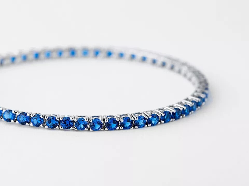 Colored Diamond Intensity: Fancy Setting Style: Prong Main Stone Shape: Round Number of Diamonds: AS PER IMAGE Base Metal: Silver Secondary Stone: Diamond Type: Bracelet Main Stone Color: Blue Wholesale: Yes Customized: Yes Certification: NA Main Stone Creation: Lab-Created Personalize: Yes Diamond Color Grade: D Occasion: Anniversary, Birthday, Christmas, Engagement, Mother's Day, Valentine's Day, Wedding Material: Gemstone Handmade: Yes Gemstone Clarity Grade: Eye Clean Seller Warranty: Yes Style: Tennis Shape: Round Theme: Beauty Main Stone: Sapphire Color: White Cut Grade: Excellent Metal Purity: 14k Metal: White Gold Plated Main Stone Treatment: Not Enhanced Main Stone Width: 4 mm Total Carat Weight: 5.00 ctw - 9.99 ctw Number of Gemstones: AS PER IMAGE Brand: Narnia_jewel Item Length: 6.5 in