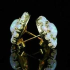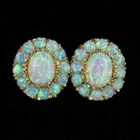 5Ct Oval Fire Opal Flower Push Back Diamond Stud Earrings 14k Yellow Gold Finish