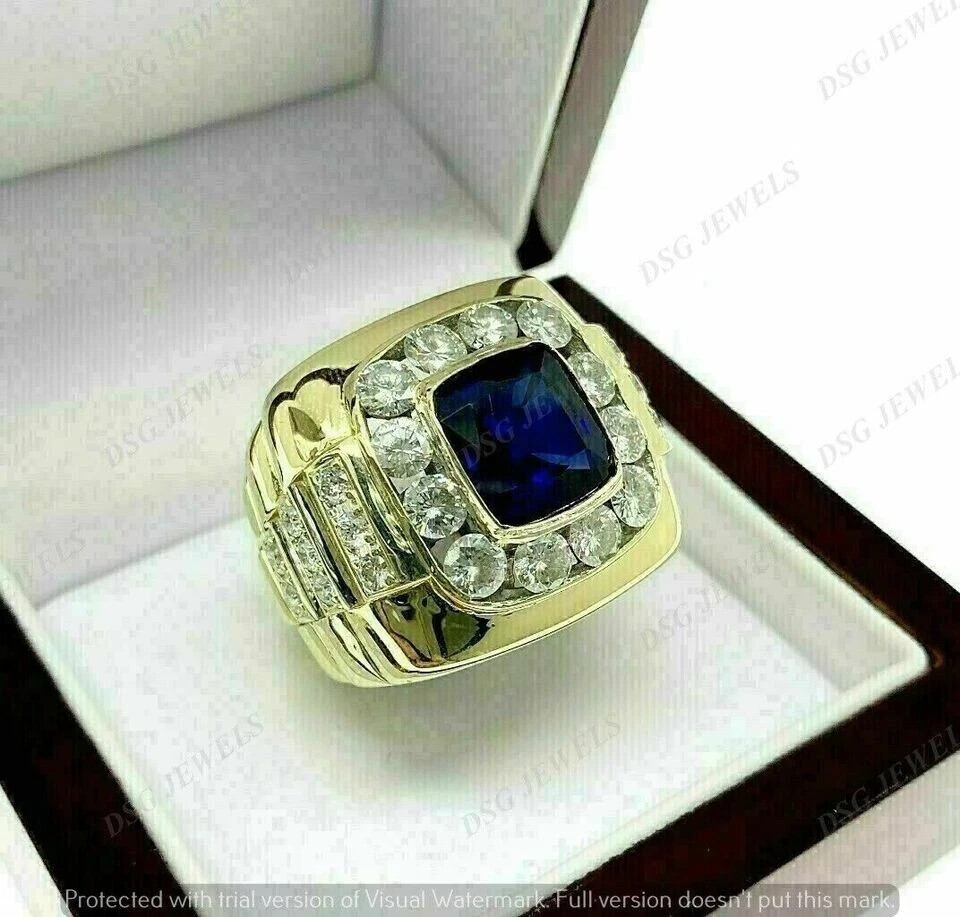 $ 57.1614K Yellow Gold Plated Princess Cut D/VVS1 Moissanite Half Bezel Mens Ring