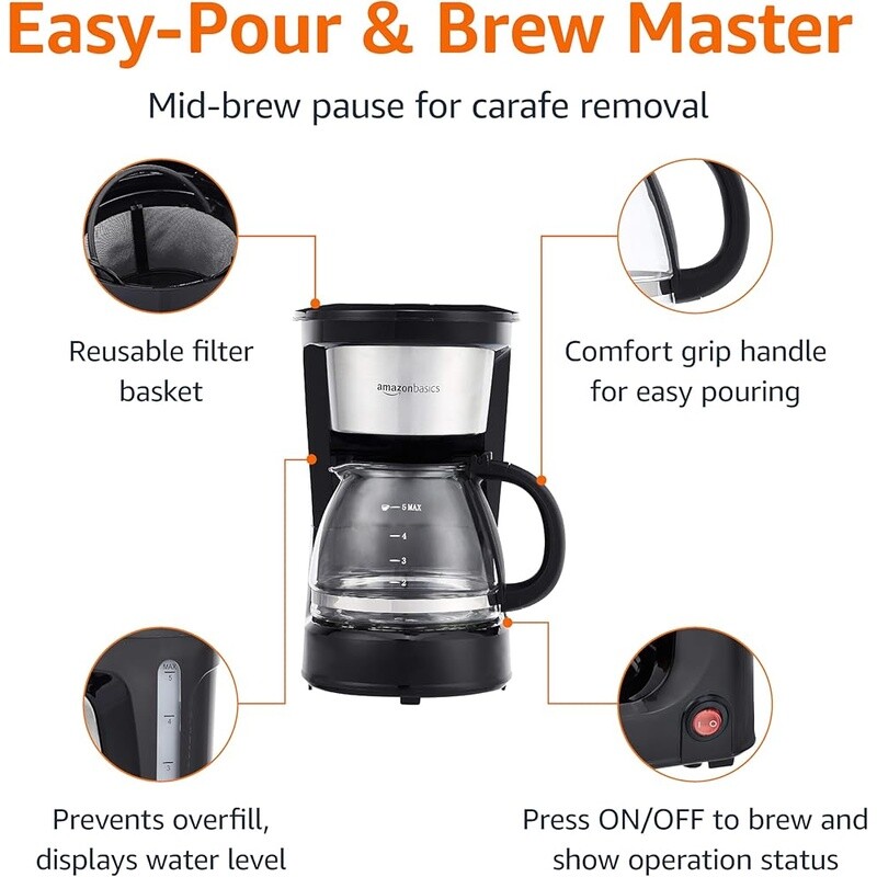 You may also like Heavy Duty Office Chair Cylinder Replacement Class 4 Hydraulic Piston Universal 35.63 USD Free shipping Broadband Mesh Quad Camp Chair Cooling Mesh Back W/ Adjustable Arms Red One Size 43.83 USD Free shipping Humidifier Suitable Indoor Use Portable Suitable Home Offices 3D Flame Effect US 71.48 USD Free shipping Handheld Steam Cleaner Multi-Surface 9 Accessories Pressurized 1050W Deep Clean 51.98 USD Free shipping Wall Mounted Clothes Drying Rack Space Saving Retractable Easy Install Closets 49.28 USD Free shipping Nightstand Side Table W/ Charging Station 2 Drawer Storage Bedroom Home Black US 51.98 USD Free shipping Cold Press Juicer 2 Speed Easy Clean Portable Bottles Quiet Motor Fruits Veggies 123.49 USD Free shipping Extendable Microwave Stand Storage Rack W/ Spice Holder Adjustable Hooks Black 49.44 USD Free shipping Electric Salt Pepper Grinder Set Rechargeable LED Display One-Hand Operation New 51.98 USD Free shipping Adjustable Starlink Roof Ridge Mount Kit Gen 2 Non-Drilling Antenna Installation 90.97 USD Free shipping Luxury Diatomaceous Earth Bath Mat Super Absorbent Quick Dry Non-Slip Easy Clean 49.38 USD Free shipping Washable 5x7 Vintage Area Rug Non Slip Carpet Living Room Bedroom Decor Braided 64.98 USD Free shipping About this item CONVENIENT DESIGN: This small coffee maker is convenient for homes, apartments, and offices due to its 5 cup capacity, fitting easily into compact spaces SIMPLE OPERATION: Brew with ease using this drip coffee maker by pressing the ON/OFF switch. The indicator light clearly shows when the coffee maker is active for added convenience KEEP YOUR COFFEE HOT: This 5-Cup coffee maker has a warming plate that keeps your brew warm until you turn it off, without scorching OVERHEAT PROTECTION: This stainless steel coffee machine prevents stops brewing when water is low or temperature exceeds the rated temperature, helping prevent overheating and dry-boiling EASY MAINTENANCE: The reusable filter basket is removable for quick cleanup, reducing waste and making it easy to keep your coffee maker in top condition Color: Black and Stainless Steel Product Dimensions: 5. 91"D x 7. 87"W x 9. 69"H Special Feature: Reusable Filter, Keep Warm, Over-Heat Protection, Compact Design, Easy Operation & Maintenance Coffee Maker Type: Drip Coffee Machine You may also like 23 Gal Black Plastic Footlocker W/Wheels Durable Portable Storage Bins Rectangle 37.03 USD Free shipping Giddy Up Electric Grill Brush Rechargeable Heavy Duty Stainless Steel Bristles 88.35 USD Free shipping 24 Inch Mountain Bike W/ Front Suspension 18 Speed Teens Girls Adventure New 144.31 USD Free shipping 3.2 Cu Ft Retro Dry Erase Compact Fridge, (EFR331 248.85 USD Free shipping Tiger 9' Spinning Surf Combo Fishing Rod Reel W/ Bonus Pompano Rig Setup New 43.84 USD Free shipping Seat Mount Clamp-on Swivel Fit Depths 7.5-18 In Hole Pattern Installation Boats 67.71 USD Free shipping 4-Bike Hitch Mounted Rack Carrier Road Trips Camping Adjustable Tie-Down System 281.25 USD Free shipping 16-Piece Unbreakable Plastic Dinnerware Set Lightweight Outdoor Camping Dishes 30.98 USD Free shipping Max X 6'6" Spinning Rod Reel Combo Graphite 24 Ton Smooth Action Fishing Gear US 77.29 USD Free shipping All Terrain 4 Ply Tubeless Tire Lawn Garden 18 in 20X8 00-10 Self Cleaning Tread 44.37 USD Free shipping Adjustable Floor Lamp Bendable Neck Approximates Natural Light Multi-Directional 60.51 USD Free shipping Meringue Powder Egg White Substitute Baking Royal Icing Meringues Kosher 4oz New 24.0 USD Free shipping