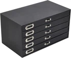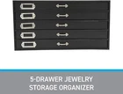 • 15¼” Wide x 8½ "Deep x 8” High • Black Faux Leather Finish • 5 Drawers Inside dimension of the drawers height is 1 1/16th" • Gold or Silver Finish Pulls • Inserts/Liners Sold Separately The 5 Drawer Black Leatherette Jewelry Storage Organizer is a useful tool for easy access and display of jewelry merchandise. Each organizer comes with 5 drawers that are matte black inside and the case and drawers are black leatherette finish on the outside. Each drawer has a small either silver or gold finish pull for easy access to content. Any of our 14” inserts will work with this organizer. The pads and inserts are not included. Shipping We ship primarily via FedEx, UPS, USPS, etc. to the Continental US. At times other private shipping companies may used as well. Most orders are shipped within 24 hours of receipt of Payment. (excluding weekends and holidays.) A physical address is needed for all orders as we are unable to deliver to PO boxes. Items will be shipped from one of the following states: Georgia, Louisiana, Missouri, Nevada or Pennsylvania. Typically orders arrive within 1-5 business days of receipt of payment. Please note that we only ship to the contiguous United States. (This excludes all off-shore U.S. territories and possessions, such as Alaska, Hawaii Guam, Puerto Rico, and the Virgin Islands) We also do not ship internationally. Shipping insurance is included for Loss/Damage protection on ALL orders. Please check your shipping address carefully prior to check out. Orders placed on weekend may be processed immediately and will be shipped on the following Monday. Notification of shipment with tracking number will be sent to buyers within 24 hours of shipping.