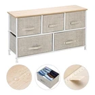 Welcome to Our Store Description Introductions: Give your household essentials a cozy landing spot with the 5-Drawer Dresser. This beautiful dresser chest features a tabletop surface and pull-out drawers to tuck away household clutter. The thoughtful design is great for small living spaces and works equally well near the bed or sofa. Organization enthusiasts will enjoy filling each drawer with clothing, linens, and knick-knicks from around the home. The lightweight frame makes this unit easy to transport and when not in use, simply fold the fabric drawers flat for storage. Use alone as a single unit or pair with any drawer configuration from the Furniture Collection. Features: 1.Restore A Tidy Home: Bits and pieces scattered everywhere in your home? With these 5 removable drawers you can sort items by type; easily tame the mess and bring back the fresh feeling to your sweet home 2.When Fabric Meets Rigid Metal: A perfect mix bringing its strengths into full play - iron frame offers stable support for fabric boxes, and the fabric element adds a soft and warm touch to the metal-framed dresser drawer, and is more lightweight to move 3.Every Room Scrambles For It: The cloakroom wants it as a cabinet to offer a home for workout gear, leggings and pajamas; the nursery wants a chest of drawers to stow baby stuff; the entryway wants a space saving storage unit for coming and going things; what's your plan 4.Stability Comes First: Crafted with a wooden tabletop and metal frame, the dresser is stable and durable. 4 adjustable feet allow you to use it on uneven surfaces and adds extra stability 5.Easy to assemble: With a simple structure, it's a breeze to assemble the storage unit. Simply fix the screws in position and unfold the 5 drawers and it's ready to tame the mess Note: 1.When receiving the goods, please confirm the product according to the listing of instructions. Once you find Less pieces, please provide relevant pictures to contact us. We will deal it in the time. 2.Please install goods with the instruction manual. 3.It is recommended that the installation should not be too tight to adjust easily. After the structure is installed, firm the interface for more stability. Specifications: 1.Color: Linen / Natural 2.Material: MDF(Medium Density Fiberboard),Iron,Non-Woven Fabric 3.Frame Dimension: (39.4 x 11.4 x 21.7)" / (100 x 30 x 55)cm (L x W x H) 4.Drawer Dimension: (18.11x 10.63 x 8.46)"/ (46 x 27 x 21.5)cm (L x W x H) / (11.81 x 10.63 x 8.46)" / (30 x 27 x 21.5)cm (L x W x H) 5.Drawers: 5drawers 6.Product Care: Wipe Clean With A Wet Cloth And Let It Dry 7.Product Weight: 20.5lb / 9.3kg 8.Static Load Capacity Of The Shelf: 33lb / 15kg 9.Static Load Capacity Of Each Drawer: 11lb / 5kg Package Includes: 1 x Drawer Storage Dresser 1 x Assembling Tool Kit 1 x Instructions