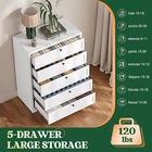 Home5-Drawer Metal Dresser Tall White Bedroom Storage Organizer