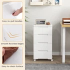 Color: White Material: PP Overall Dimensions: 16" x 13" x 31" (L x W x H) Inner Size of Small Drawer: 11" x 6.5" x 6"(L x W x H) Inner Size of Big Drawer: 11" x 14" x 6" (L x W x H) Height off the Ground: 2.5" Load Capacity of Cabinet Top: 22 lbs Load Capacity of Each Small Drawer: 5.5 lbs Load Capacity of Each Big Drawer: 11 lbs Net Weight: 11 lbs Package Includes: 1 x Rolling Storage Cabinet 1 x User Guide ▌ PRODUCT DETAILS: Description: Efficiently organize your essential items with our rolling storage cabinet, perfect for both home and office settings. Made of quality plastic, this vertical storage unit features 5 drawers that can accommodate a variety of items, from office supplies to craft materials. Each drawer slides smoothly, allowing for easy access to your items. The universal and lockable wheels offers mobility and stability, you can move the cabinet with ease, and securely lock it in place. The sleek, modern appearance of the drawer dresser complements any room. Its vertical design maximizes space efficiency, perfect for living room, bedroom, kids' room, study, or office. Assembling this storage organizer tower is a breeze with its tool-free, snap-together construction. Features: 5 drawers provide large storage capacity to keep your essentials neatly arranged The spacious top is ideal for displaying decorations or accessing items High-quality pp material ensures long-lasting durability resists stains Easy-to-pull handles help you pull out the drawers easily Universal wheels (2 lockable) make the cabinet easy to move around Smooth rounded edges avoid accidental bumps Ideal for use in various settings including offices, homes, and craft rooms Vertical design maximizes storage options without occupying much floor space The smooth easy-to-clean surface is quick to wipe down Interlocking components snap together to reduce installation time Specifications: Color: White Material: PP Overall Dimensions: 16" x 13" x 31" (L x W x H) Inner Size of Small Drawer: 11" x 6.5" x 6"(L x W x H) Inner Size of Big Drawer: 11" x 14" x 6" (L x W x H) Height off the Ground: 2.5" Load Capacity of Cabinet Top: 22 lbs Load Capacity of Each Small Drawer: 5.5 lbs Load Capacity of Each Big Drawer: 11 lbs Net Weight: 11 lbs Package Includes: 1 x Rolling Storage Cabinet 1 x User Guide ▌ Contact & Returns: If you have questions about purchases from us, please feel free to contact us through eBay's Message Center. Items should be returned in their original product packaging and all accessories in the original shipment must be included if you would return the item. ▌ Shippment: • Free Standard Shipping on all items. • All orders are shipped out via UPS, Fedex, USPS or LTL. • Transit time is 2-7 business days varying on customer’s location to fulfillment center. • Tracking numbers will be automatically updated once order is shipped. • We only ship to the Lower 48 States, no current shipping to Hawaii, Alaska, Puerto Rico, nor Guam. • We do not ship to FPO, APO or PO Boxes.