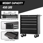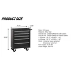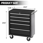 Fe atures: FAIR STORAGE SPACE: The rolling tool chest is designed with 5 drawers for storing tools, small equipment or other objects. And its top, with a cushion, can be used for placing tools during work as well. WHEELS & HANDLE FOR MOBILITY: The tool cabinet is designed with 4 wheels, which makes it easier for you to move it around. And 2 of the wheels have brakes. When you want it to stay in one place, just lock the wheels. DURABLE & EASY TO MAINTAIN: The tool chest with wheels is made of quality steel for enhanced durability. And with powder coating finish, its surface is smooth, which makes it easy to maintain and clean. WIDE APPLICATION: With easy mobility and fair storage space, the tool storage chest can be utilized in various occasions like garage, warehouse, workshops, repair shops, etc.