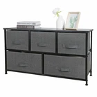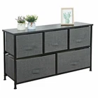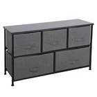 Specifications: Color:Charcoal gray Drawers: 5 Drawers Weight:9.75kg/21.49lbs Product Dimensions: 38.7"*11.42"*21.38" Material: Iron Frame, MDF, Gray Cardboard The Big Drawer's Size:18.11"*10.8"*8.46" The Small Drawer's Size:11.8"*10.8"*8.54" Load Capacity Of The Shelf: 22lb / 10kg Load Capacity Of Each Drawer: 11lb / 5kg Product Care: Wipe Clean With A Wet Cloth And Let It Dry Features: 1.Restore A Tidy Home: Bits and pieces scattered everywhere in your home? With these 5 removable drawers you can sort items by type; easily tame the mess and bring back the fresh feeling to your sweet home 2.When Fabric Meets Rigid Metal: A perfect mix bringing its strengths into full play - iron frame offers stable support for fabric boxes, and the fabric element adds a soft and warm touch to the metal-framed dresser drawer, and is more lightweight to move 3.Every Room Scrambles For It: The cloakroom wants it as a cabinet to offer a home for workout gear, leggings and pajamas; the nursery wants a chest of drawers to stow baby stuff; the entryway wants a space saving storage unit for coming and going things; what's your plan 4.Stability Comes First: Crafted with a wooden tabletop and metal frame, the dresser is stable and durable. 4 adjustable feet allow you to use it on uneven surfaces and adds extra stability 5.Easy to assemble: With a simple structure, it's a breeze to assemble the storage unit. Simply fix the screws in position and unfold the 5 drawers and it's ready to tame the mess