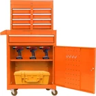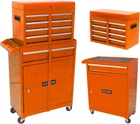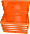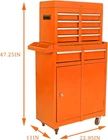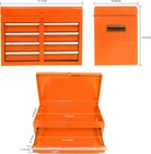 Package Size Length (in.): 27.00 Width (in.): 22.40 Height (in.): 13.00 Weight (lbs.): 45.60 Product Features There are five drawers in the metal tool cabinet. This product does not have a lock. The metal storage cabinet comes with four wheels, so you can move the cabinet around freely. The metal storage cabinet has large internal storage space, which can meet the storage needs of customers. The overall bearing capacity of the tool cabinet is 100KG. The bearing capacity of drawers is 15KG with ball guide rails. There are multifunctional handles on the side of the tool cabinet for a screwdriver. Inside the storage cabinet there is an adjustable shelf and 4 adjustable bolts The inside door of the storage cabinet has holes for hooks to hold some tools. CAMPFUN 5 DRAWERS TOOL CABINET-4 COLOR DETAIL DISPLAY DOUBLE HANDLE TROLLEY HANDLE&TOOL HOPPER METAL HOOK METAL DOOR HANDLE Plastic Handle for Tool Chest Good quality plastic handle,and the side handle can help you move easily. Tool Setting Hole 6 tool setting hole Hanging Panel Hanging panel on the back side of the door Ball Bearing Slide 15 KG loading capacity for ball bearing slide for every drawer Product Details Product Type Tool Cabinet Color Orange Material Metal Surface Technics Powder Coating Usage Scenarios Garage;Workshop Thickness 0.5~0.6MM