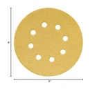 Box of 25 Premium 5" 40 Grit Gold 8 Hole Pattern Sanding Discs with a Hook & Loop Backing. High-performance coarse-cut 5" finishing sanding discs with a hook & loop backing enables them to be quickly and securely attached to a sanders hook & loop backing plate. The 8 hole pattern allows dustless sanding when attached to a 8 hole backing plate. Superior quality sanding discs made with super coated aluminum oxide corundum that's fused with zirconia alumina. It delivers a fast, exceptionally long-lasting sharp cut with a consistent scratch pattern. It has maximum resistance to clogging and loading, increasing your productivity and reducing material consumption. These coarse-cut sandpaper discs are ideal for sanding on all types of surfaces. Use them for aggressive sanding on automotive paint, primers, body fillers, and putties before painting or for removing scratches on wood and paint. Our sandpaper discs are suitable for use in auto body and paint shops, woodworking wood furniture making, metalworking metal sanding, crafting, household, drywall, industrial, fiberglass, plastics, or any other surface that needs sanding. Fits DeWalt DW421,DW423,5-inch Ryobi,Bosch 3107,3725,Makita B05010 offers a complete vast product line of professional, high-quality sandpaper types that provide exceptional sanding performance, so you can get the job done fast, saving you time and money!
