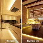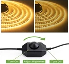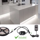 Feature SUPER BRIGHT AND SAFE TO USE: This 16.4ft strip light includes 600 bright LEDs, 9000lm. And the working voltage is 12V, extremely Low Heat. It is touchable. DIMMABLE&CUTTABLE: Controlled them by switch dimmer( included), convenient to adjust brightness. It can be cut every 3 LEDs along the cutting marks, without damaging the rest strips. EASY INSTALLATION: Self-adhesive back with adhesive tape for safe and easy application. WIDELY USE: The strip has excellent heat dissipation, making it much more durable. It very suitable for living room, kitchen, under cabinet, dining room, bedroom, party, stairway, wedding, etc. Dimmable Included a dimmer to control the brightness, adjust one brightness as you desire. Flexible Operations Slim, compact and flexible PCB strip. Mount end-to-end for bendable or angled patterns, or in continuous rows. Durable By adopting qualified FPC circuit board and LEDs, the strip has excellent heat dissipation. Cuttable and Linkable The strip light is cuttable and linkable, design a fit length of strip light according your need. (connector not included) Widely Use It very suitable for living room, kitchen, under cabinet, counters, cupboard, shelf, TV backlighting, dining room, bedroom, party, stair, wedding, hutches, bar, car, workbench, bookcase, jewelry case, showcase, wine cellar and more. Specifications ● Color: 3000K-3200K Dimmable Warm White /4000K Daylight White ● LEDs Type: 2835 LEDs ● Light Length: 16.4ft(600LEDs) ● Working Voltage: 12V DC 3A ● Adapter Input Voltage: 100-240V AC ● Lifespan: 50,000 hrs ● Output Voltage: 12V Package Include: ● 1 X LED Strip Lights ● 6 X Clips ● 1 X Dimmer ● 1 X 12V 3A Power Supply Adapter NOTE ● The 3A Power Adapter only support 1* 5M strip light, we do not recommend extending it.