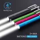 DURABLE CONSTRUCTION: These penlights are made from anodized machined aircraft aluminum, which makes them won't wear out overtime and withstand drops and bumps. QUICK-ACTIVATION BUTTON AND BEND CLIP: The single-mode button on the tail end of the flashlight enables swift on/off functionality,edroom reading, camping, hiking, fishing, nursing, BBQ. BATTERIES INCLUDED: Each flashlight comes with 2 preloaded AAA batteries,which is suitable for . Please remove the red insulated sheet before use. SUPER BRIGHT ILLUMINATION: These flashlights are equipped with a powerful Super Bright LED, delivering an impressive light output of 30 lumens. This makes them perfect for a wide range of activities such as night walking, reading in the bedroom, camping, hiking, fishing, and even BBQ gatherings. LONG-LASTING LED: Never need to replace the LED bulb since it is made to support a super long-lasting life of 100,000 hours.