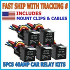 Welcome to Kumbala eBay Store Description: - 100% Brand New - 5Pcs Relay Switch 5Pin Harness Socket Waterproof 40A 12VDC - Automotive Car Wire Gauge: 16 AWG - Size: 27mm*27mm(relay) 125mm(socket wires) - Pins: 5-PIN - Rated Voltage: 12V - Max Switching Current: 40A - 12V 5 prong relays with 5 prong sockets wires - 40A/30A high switching capability - Heavy-duty impact molded relay socket with 5 WIRES - Able to open or close a circuit, used for car lights, fog lamps, wiper, starter, fans, speakers, traction control systems, etc. - Unique Male-to-Female Slot Design, neatly connect all the relays together on a panel - Includes Color-coded wires - Made with High Quality, Breathable Neoprene, Latex Free, Non Allergic Natural Solution - Black(Ground) PIN 85; Blue(Positive)PIN 30; RED PIN 87a; White (To Switch) PIN 86; Yellow (To Light/Accessory) PIN87 Specification: - Contact Form: 1A, 1B, 1C, 1U, 2A - Contact Material: AgSnO2 - Wire Gauge: 16-18 AWG - Max. Switching Current: 40A - Max. Switching Voltage: 27V DC - Insulation Resistance: 100MΩ - Power Consumption: 1.6W 1.8W - Dielectric Strength (Coil and Contact): 500V AC - Working Temperature: -40℃ to 85℃ - Operate/Release Time: 10MS/10MS - Terminal Type: Fast Connection Terminal Included in this package: - 5X Relay Switches - 5X Connectors - 5X Metal Bracket Warranty & Customer Service : 30 days money back 60 days seller's guarantee, 24 Hours friendly customer service!