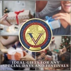 Still wondering what to add in a collection ? A special and long-last memory gift? Or the connection between you and your most important one. You can always find your own treasure here. About the item Our challenge coin is 1.57 inch in diameter and 0.12 inch in thickness, and it has bright colors with 3D carving techniques, iron with gold plated material. It's very easy to carry in your daily life, such as put it in a pocket, purse, backpack, or put it on display on any table or desktop. Honor the bravery and sacrifice of our military heroes with this striking, patriotic challenge coin. This collectible coin commemorates the courage and dedication of those who have served, making it an ideal addition to any collection or a meaningful gift for veterans and service members. The obverse side of our military veterans challenge coin showcases a soldier holding a rifle with the letter "V" in the colors of the American flag. Encircling the design is a powerful quote: " There is no greater love than to lay down one’s life for his friends ," along with the words " Courage, Service, Integrity, Loyalty, Respect, Duty. " The reverse side of coin features an image of military boots against a U.S. map backdrop with an American flag. The text reads “ Land of the Free, Home of the Brave ” and “ Thank You For Your Service. " It is a perfect item which is an ideal gift for Veterans Day, Memorial Day, or any occasion to honor a veteran's service. It's a thoughtful and enduring way to say " Thank You ." Owing it, challenging your life, showing your strong, just live our fearless soldiers/veterans, never give up. (Click " Add to Cart " to get your Veteran Challenge Coin today and honor the brave men and women who have served our country with pride.) ( There are also so many blank coins supporting to customize, if any interest, welcome to contact. We have machines, which can produce the item on the day. Cilk your cute finger message me!!! ) SUPER ATTENTION IF THERE HAVE MORE COIN BUYING, MORE DISCOUNT WILL GAIN FOR YOU. Package Each coin will be packed up individually with a plastic case suit in opp bag. Shipping We'll start shipping as soon as possible within 3 business day normally. Tracking will be available after several hours. Feedback We try to make sure ALL customers are satisfied with our services, if you do, a POSITIVE feedback is appreciated, thank you very much. And we always leaving a positive one for customer when item is delivered successfully. Contact Us Feel free to contact us at any time, we're happy to help. You can reach us by eBay or E-mail. Have a nice day! Pls check the item specification carefully before buying it.