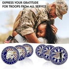About this item Includes 5 pieces military veterans challenge coins. You can proudly present them to the valiant military personnel around you to thank them for their service, and show your respect Made of high quality of iron plated silver, exquisite workmanship, durable, good enough for using as military gifts Diameter: 1.57"(40mm); Thickness: 0.12"(3mm), each veterans coins comes with a clear plastic protective case Military appreciation coins are printed with classic military elements such as the American flag and soldiers, the front says, "YOUR NATION PROUDLY SALUTES YOU", the back says, "THANK YOU FOR YOUR SERVICE". Perfect as a gift for those soldiers who work hard to keep our communities and our country safe These military commemorative coins are suitable as veteran gifts, military retirement gifts, graduation gifts, thank you gifts for your family, friends, colleagues, neighbors on Veterans Day, Graduation, Thanksgiving, etc. Packing Each coin will be packed up individually with a plastic case suit in opp bag. Shipping We'll start shipping as soon as possible within 3 business day normally. Tracking will be available after several hours. Feedback We try to make sure ALL customers are satisfied with our services, if you do, a POSITIVE feedback is appreciated, thank you very much. And we always leaving a positive one for customer when item is delivered successfully. Contact Us Feel free to contact us at any time, we're happy to help. You can reach us by eBay or E-mail. Have a nice day!