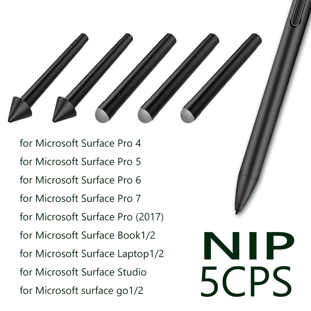 5Pcs Original Pen Tips Stylus Pen Tip HB HB HB 2H 2H Replacement Kit for Microsoft Surface Pro 7/6/5/4/Book/Studio/Go Feature: Compatible-only compatible with Surface Pro 4 Pen Pro 5 Pro 6 Pro 7 ProX Book Go, etc. Highly sensitive-the tips offer you a precise writing / drawing experience. With excellent responsiveness and sensitivity, you can write without restriction. Original quality-the quality of the pen tip is as good as the original, which is compatible with surface. No scratches: the fine rubber tip is clean and smooth. No scratches, friction on the screen is also greatly reduced. Easy installation-they are: HB HB HB 2H 2H. Without tools, the pen tips are easy to attach. Only by hand can you replace or remove the tips. Specification: Model: HB HB HB 2H 2H Applicable models: for Surface Pro 4/5/6/7/Book ProX Size: 1.5*0.1*0.1cm Colour: Black Material: ABS Applicable Model: For Microsoft Surface Pro 4 For Microsoft Surface Pro 5 For Microsoft Surface Pro 6 For Microsoft Surface Pro 7 For Microsoft Surface Pro (2017) For Microsoft Surface Book1/2 For Microsoft Surface Laptop1/2 For Microsoft Surface Studio For Microsoft surface go1/2 Note : Pen is not included. Due to the different monitor and light effect, the actual color of the item might be slightly different from the color showed on the pictures. Thank you! Please allow 1-2cm measuring deviation due to manual measurement.