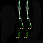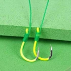 Description: Product name: Fluorescent anti-winding spring fish hook Sports outdoor items: fishing Fishing hook type: spring hook Configuration: spring, space bean, Isen fish hook with tube Features: Sharp hook tip, quick puncture, high strength, anti-oxidation, hand-tied system, enhanced anti-winding performance. Size: No. 13 fish hook about 11.1*21.5mm Material: silicone, high carbon steel, PE wire, EVA wire board Quantity: 5 pieces/board Instructions: 1. Take appropriate amount of bait and place the spring in the middle of the spring. 2. Slightly knead, so that the bait is attached to the spring, and the rod will not fall off. 3. After attaching the bait, you can go fishing. The package includes: 5*spring hook 1*Line board