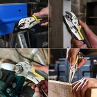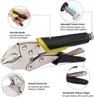 Features: 5-piece set of locking pliers for gripping, twisting, turning, and tightening Includes 6.5-inch and 9-inch straight jaw pliers with 5-, 7-, and 10-inch curved jaw pliers Equipped with strong teeth for a more secure hold Steel wire cutting capability for added versatility Adjustable screw on the handle ensures optimal clamping pressure Specification: Material:Alloy Steel Color:Silver Item Weight:3.49 Pounds Specific Uses For Product :Clamping,Cutters,Gripping,Hold,Locking Pliers,Teeth,Turning,Twisting Notice: In case the item is defective, please inform us within 15 days of receipt, we will arrange reship or refund. Buyers have to pay for the return cost and we will pay the cost for resend. If you are unsatisfied with our item or service, please contact us before leaving any feedback. We are committed to resolve all issues in a friendly and satisfactory manner. We always reply to messages within 2 business days (off-duty at weekend).If you do not get a response from us, then please check your junk or spam mailbox.