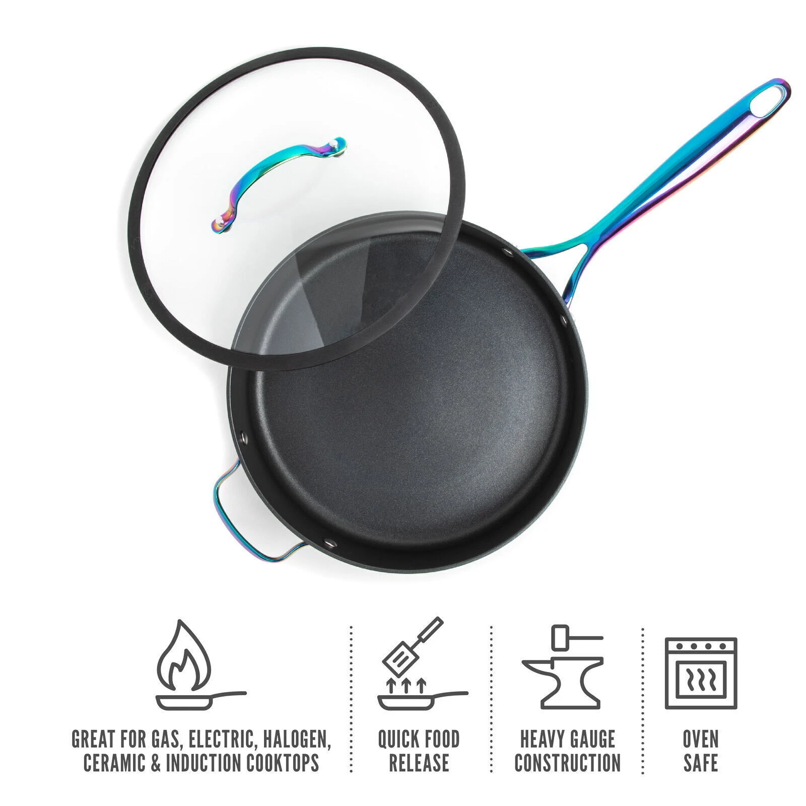 Stainless Steel induction base Oven Safe up to 500 °F Great For Gas, Electric, Halogen, Ceramic and Induction Cooktops 5 Quart Heavy Gauge Construction