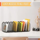 Desk File Organizer 5 Sections Desktop Organizer File Sorter Office Organization File Folder Holder for Office School & Classroom Durable Metal Mesh Construction: Made of high-quality metal mesh, this desk file organizer is sturdy and durable, perfect for holding books, file folders, and papers without bending or breaking 5 Section for Easy Organization: With 5 sections, this upright office file holder allows you to easily separate and organize your files, documents, and folders. Each section can hold letter-size documents or books upright for quick access Sleek and Modern Design: The sleek metal mesh design of this file sorter adds a touch of modern style to any office, school, or classroom setting. It will complement any decor while keeping your workspace neat and organized Versatile and Multifunctional: This vertical file organizer for desk is not only ideal for organizing files and documents in the office, school, or classroom, but it can also be used to store books, magazines, notebooks, and other essentials. It is a versatile storage solution for any workspace Easy to Assemble: The upright office file organizer is easy to assemble and compact enough for easy storage when not in use.【WARM NOTE】Do not tighten the screws too tightly before all parts completely put together, If there is no alignment between the screws and holes position please push them aligning with a little bit strength then tighten the screws.