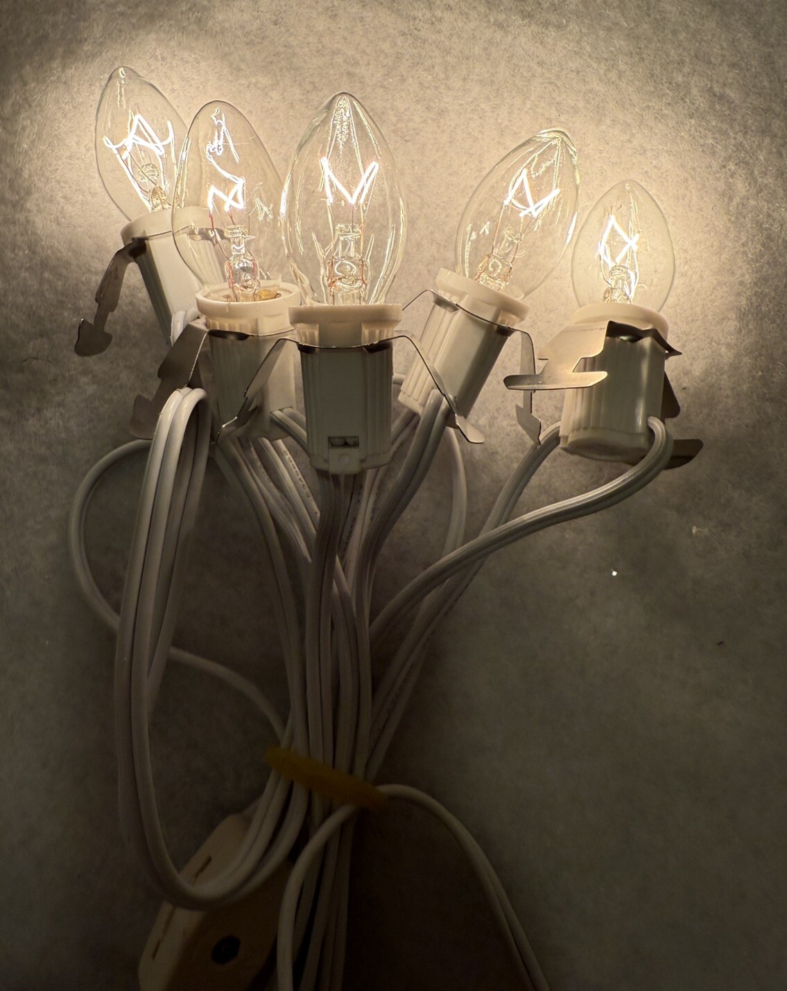 Will not guarantee life of bulbs due to used condition. Bulbs are working and tested at time of sale. C7 5 Socket Light Cord Set Dept 56 Lemax Christmas Village Sets On/Off Switch A11