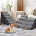 Dog Stairs for Small Dogs, 5-Step, 22.5”H, Dog Steps for High Beds Couches with All-Round Waterproof Cover, Non-Slip Sturdy Dog Ramp for Old Cats, Injured Pet 【Dog Stairs for Small Dogs】The size of the dog stair is 33"*15.7"*22.5". The dog steps can withstand pets up to 60 lbs.However,given the size of the dog stairs,we prefer to recommend it for small dogs under 50 lbs.The height of the 3-step is 15.7" and the height of the 4-step is 19.7".The 3-step is suitable for furniture such as sofas or beds up to 17”.The 4-step is suitable for use with high beds or other furniture up to 21”.The 5-step is suitable for use with high beds or other furniture up to 24”. 【Slope Design】The dog stairs&steps adopts a sloping design,which avoids the pressure on the leg joints brought by the right angle dog stair,and also avoids the problem that the dog ramp is too steep and not safe enough.The angle of this dog bed stair has been designed after many experiments,so that the sponge and the cover fit better and the cover is not easy to move. Safer for pets to use. 【Waterproof Cover】Dog ladder cover is made of corduroy and leath-aire.The corduroy top layer provides a cozy touch and increased friction, and the interior adds a waterproof layer.The sides are made of leath-aire,which is not easy to seep water.Even if your dog pees,the sponge is effectively protected from getting dirty.Silicone dots all over the bottom of the cover for non-slip effect.Double zippers make it easy to remove.The cover is machine washable. 【High Density Foam】The dog stair for small dog is made of 30D high-density sponge for better support,high resilience and not easy to deform.The back of the cover carries a carrying handle to make it easy to move the step.Even if pets use the stair at night when you are resting,it can be quiet.Even if you accidentally bump into it, it will not be dangerous. 【Recommendations for Use】Given the weight and size of the foam dog stair itself,in order to make it more stable and safer for your pet to use,we recommend that you use the pet stair against a wall or against a bed,where the pet step has a support point.You can also place a carpet, etc.At the bottom of the step to increase the friction between the step and the floor,and the pet step is not easy to move when using it.After receiving the package,please wait 24~48 hours for the sponge to expand.
