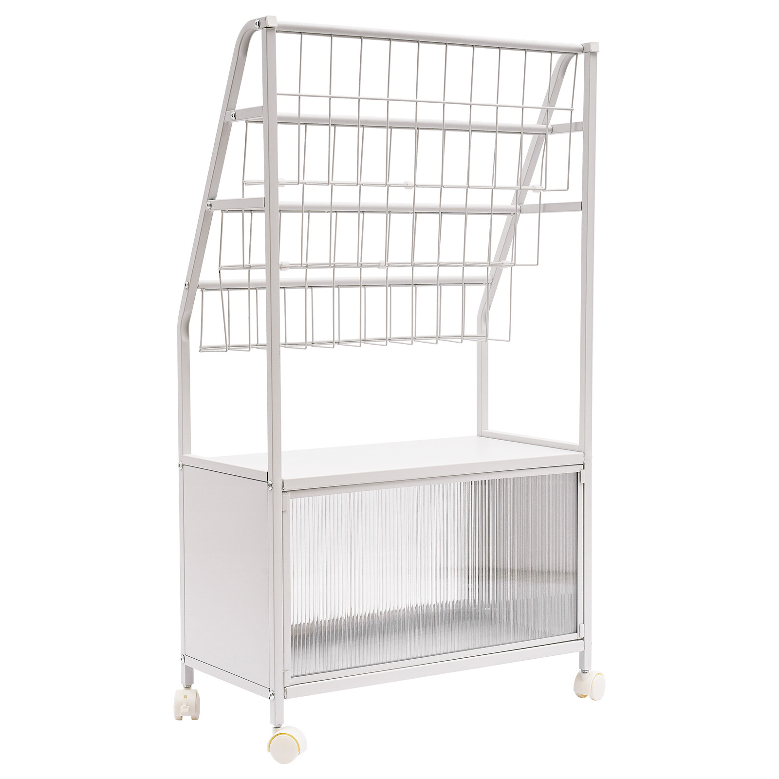 $ 63.36360° Rotating White Bookcase Freestanding Display Shelf for Books & Storage