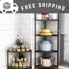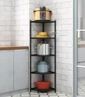 Product: Pot Racks & Cookware Stand This saucepan rack offers a great solution to keep your pots and pans in one single place. Best Kitchen Cabinet Pantry Organizer for your Lids, Pots, Pans, Cast Iron Skillet, Griddles, Baking Pan, Cutting Boards, and Serving Trays. Stainless Steel construction for durability and style. Easily movable and versatile. Giving you a tidy, organized, clutter-free cabinet and counter. Intelligent Storage: Pot rack provides effortless style and versatile storage in seconds. The pan Shelf help you conquer clutter and supersize your storage space. Usage Varied: Used to organize different sizes of pots, pans, lids, bake wares, chopping board, etc. It can store a wide variety of large size pans, crockery and cookware, more the pot rack is small and can be disassembled. OVERALL DIMENSION: Measures 52 inches high and 19 inches across base. HIGH QUALITY MATERIAL: 5 Tier corner shelves crafted from solid metal frame, the stainless-steel corner shelf stand is quite robust and durable, lasting for long-term use. TO SAVE SPACE: The kitchen corner storage shelves can fit in every nook and cranny of your home, stands flush against the wall to make good use of the limited corner space. EASY TO ASSEMBLE: All necessary hardware and tools are included. Product structure is simple, within just a couple of minutes to assemble.