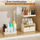 3-Tier Bathroom Counter Organizer - Versatile Makeup and Perfume Storage, Ideal for Vanity and Skincare, Cream White 3-Tier Bathroom Counter Organizer - Versatile Makeup and Perfume Storage, Ideal for Vanity and Skincare, Cream White 2-tier design with 3 drawers for enhanced storage capacity. Equipped with smooth slide rails and a non-slip silicone pad for stability. Dimensions: 12.5"L x 6.9"W x 17.3"H, perfect for various countertops. Versatile organizer for makeup, jewelry, stationery, and more. Easy to clean ABS material; no tools required for assembly. Durable construction with PET trays and metal tubes for robust use.