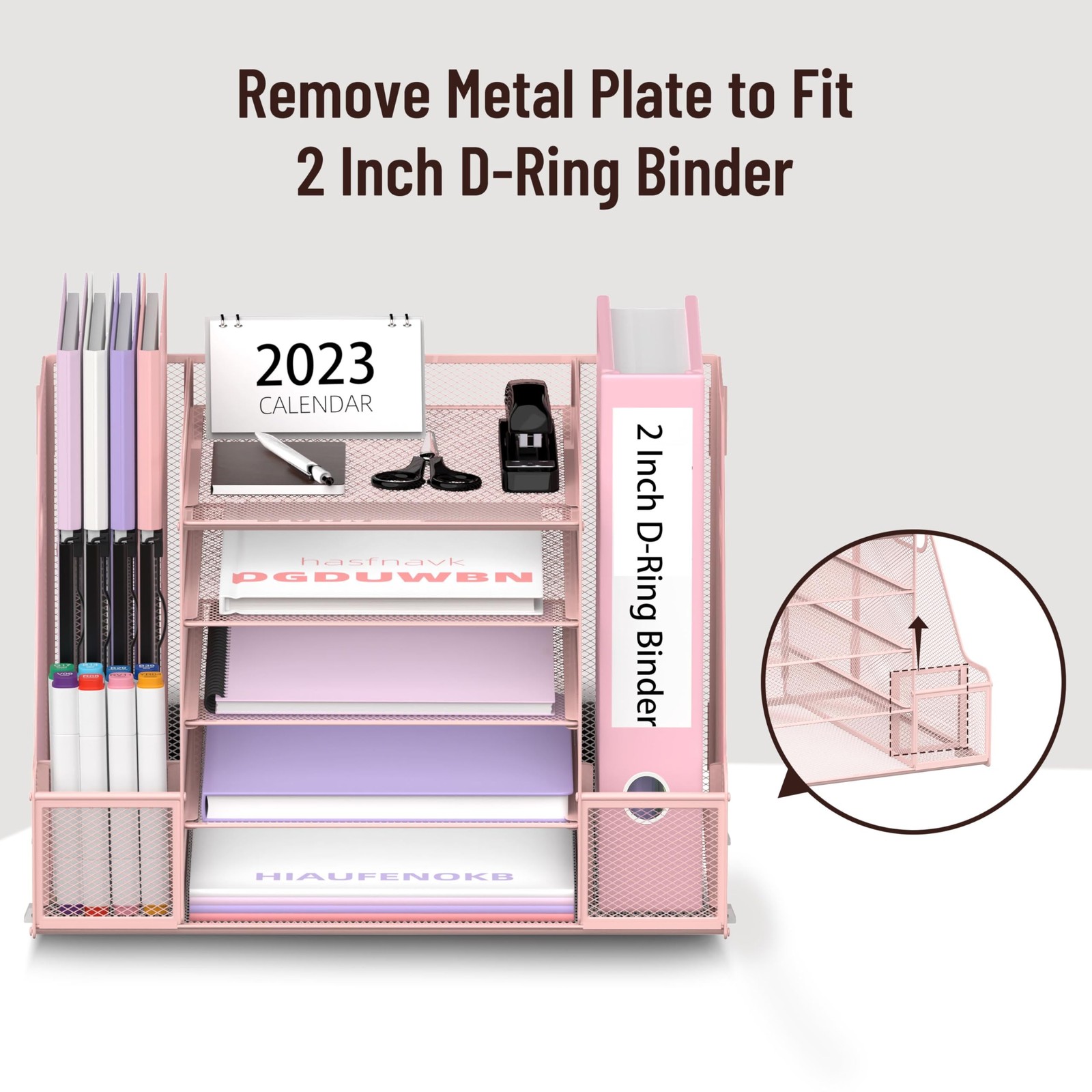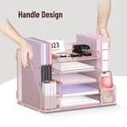 Mesh Desk Organizer with File Holder, 5-Tier Paper Letter Tray Organizer with Magazine Holder, Desktop Organizer and Storage for Office Supplies Home or School, Pink [Comprehensive Desk Organizer] This desk organizer comes with 4 sliding trays, 2 vertical magazine racks, 2 pen holders. Equipped with such a complete desk organizer, it is definitely your first choice for office accessories! [Multifunctional Paper Organizer] Paper organizer for home magazines, books and newspapers etc, or organizer for files, folders and other office supplies in the office. It is also ideal for storing student pencils, books, folders, notebooks and other stationery. Large Capacity File Organizer] This desktop organizer has five tiers, each of which has a lot of space. There is also a lot of space on both sides of the file organizer, as well as the pen holders, a large file container that can hold books, notebooks, a4 paper, and other small items is ideal for organizing files. [Handle Design] The desktop file organizer adopts a handle design, which can easily move the entire product to any position, which is convenient and labor-saving. [Sturdy and Durable] Mesh structure office organization, the whole frame is composed of metal mesh, which is strong and durable, not easily deformed or damaged. (USPTO Patent Pending, USPTO Patent Application Number: 29855039)