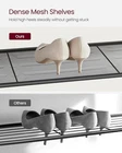 About this item No More Messy Shoes: Keep your family’s shoes organized with this smart 5-tier shoe rack. Sturdy & Spacious: Four open shelves with steel mesh hold shoes, while the top surface supports up to 22 lb for bags, keys, or decor. Each shelf holds up to 11 lb. Easy Assembly: Simple structure with detailed instructions makes setup quick and stress-free. Stable & Floor-Friendly: Adjustable feet ensure balance on uneven floors and protect tile or wood surfaces. Complete Package: Includes 5-tier shoe rack, assembly bag, and illustrated instructions.