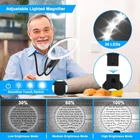 Super Bright 36 LED Lights: This hands-free magnifier is equipped with 36 LED lights, 3 levels of brightness can be adjusted at will, ensuring bright and uniform lighting in various light conditions, allowing you to easily read and view small text and patterns without causing eye fatigue Type-C Rechargeable: The lighted magnifying glass is equipped with a Type-C charging port, ensuring fast charging and strong compatibility; It can provide 3-10 hours of continuous lighting and can be fully charged in just 2 hours 5X 15X Magnifiers: This magnifying glass for close work with 2 magnifications, 5X/130mm for the main mirror and 15X/25mm for the sub-mirror, which can satisfy the needs of both wide view and detailed view; The gooseneck can be freely bent or rotated to adjust the angle to meet your requirements Snap Design: The snap-fit design at the junction of the frame and gooseneck enhances stability and makes adjustments easier, reducing looseness and wobbling; Compared to traditional clamp designs, it minimizes wear and tear; After use, it’s easier to fold and store, saving space High Quality Materials: This neck-hanging magnifying glass features a PMMA lens and an ABS/silicone gooseneck, weighing just 0.35 kg; PMMA provides higher light transmission than PVC, offering clearer magnification. It's shatter-resistant, durable, and less prone to scratches, ensuring long-lasting use 3-in-1 Magnifying Glass: The reading magnifier for books can be worn around the neck, or it can be firmly placed on a table or used as a handheld magnifying glass; this full page magnifier can meet your needs for close-up work such as reading, sewing, crafts, checking jewelry and coins in daily life and work Product Description 1 36 LED Lights 2 Rechargeable, Snap Design 3 2 Magnification Levels Ergonomic Gooseneck Design The gooseneck can be tilted and twisted to any direction and angle you are comfortable with. the around neck hanging magnifying glass can free your hands, say goodbye to arm pain and improve comfort. Rechargeable Lightweight Magnifier The total weight of this full page magnifier is 0.35 kg, with a frame and lens of 0.18 kg and a gooseneck of only 0.17 kg. This magnifying glass with light is perfect for seniors and will not be uncomfortable to wear for long periods of time! Product Details Snap Design Provides better stability, reducing shaking for clearer observation. It also allows for easy disassembly, making cleaning and maintenance convenient. Recharged via Type-C USB powered, no need to replace batteries, convenient to use, reduces long-term maintenance costs, suitable for outdoor or travel use. Sensitive Touch Switch 3 levels of adjustable brightness, the touch switch is easy to operate and can easily turn the light on or off. Flexible Hose This gooseneck magnifier weighs just 350g. The flexible gooseneck adjusts easily to any angle and can be worn around the neck or placed on a table. This hands free magnifying glass can be used in 3 ways: as a neck magnifying glass with light, a handheld magnifying glass for reading, or a magnifying glass with stand. This rechargeable magnifier for low vision seniors can be used for reading, newspapers, jewelry, crafts, jewelry coin inspection We are committed to providing better quality magnifying glass products for low vision reading enthusiasts or the elderly. Molebe's magnifying glass are completely reliable and meet your life needs, worthy of your trust and confidence.