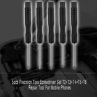 5X Precision Torx Screwdriver Set T2+T3+T4+T5+T6 Repair Tool For Mobile Phone Features: 100% Brand New & High Quality Type: T2 T3 T4 T5 T6 Screwdriver use for repair/open cell phone Length: about 8.7cm QTY: 5pcs Package included: 1 x T2 Trox Screwdriver 1 x T3 Trox Screwdriver 1 x T4 Trox Screwdriver 1 x T5 Trox Screwdriver 1 x T6 Trox Screwdriver