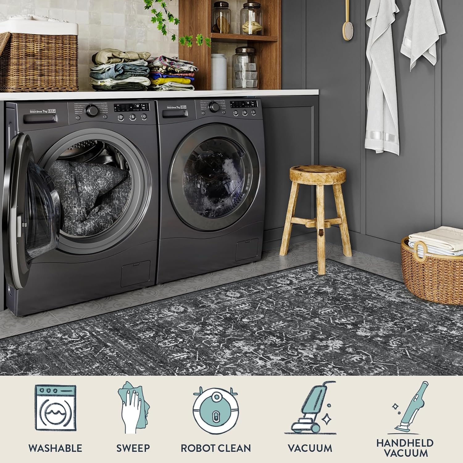 Store New Arrivals Add to Favorite View Feedback Contact Fast deliveries to the customer's home Quality customer service John Make the customers happy! 5X7 Washable Black Area Rugs for Living Room, Non Slip Bedroom Rug, Stain Resistant Floor Dining Room Carpet for Office Entrance Decor Description [Soft & Non Slip] - Our 5x7 area rugs made of faux wool, if you walking barefoot on the carpet, you will have the feeling of stepping on clouds! The skid resistant TPE backing can helps the rug stays in place well, safe for everyday indoor busy area [Machine Washable Rug] - Our easy-to-clean washable rugs 5x7 are safe in the washing machine. After pets get mud & dirt on their paws, have an accident or kids can be messy, you can just throw it in the washing machine [Pet Friendly] - Our rugs for living room 5x7 is low pile, won't be easily chewed or clawed at by your curious four-legged friendly, and paws won't get snagged or get caught on edges [Functional 5x7 Rug] - Place a large washable aesthetic 5'x7' rug by under the bed for a cozy accent. For entryway, living room, dining room, nursery, office, bedroom, kitchen, a large rectangle throw rug are also prerfect for daily use [Vintage Distressed Rug] - This boho living room rug features distressed traditional patterns with purposeful distressing to add vintage tage appeal to your space, creating a focal point for any space, that will effortlessly complement any home decor Product description 1 Rugs for living room 2 Rugs for Bedroom 3 Rugs for Dining Room 4 Rugs for Kitchen 5 Rugs for Entryway Style Vintage Weave Type Flat Woven Pattern Oriental,Vintage,Distressed Is Stain Resistant Yes Theme Floral Number of Pieces 1 Room Type Living Room Material Faux Wool Model Name Black Rug Rug Form Type Area Rug Indoor/Outdoor Usage Indoor Item Weight 3 Kilograms Pile Height Low Pile Construction Type Machine Made Special Feature Foldable, Non Shedding, Non Slip, Stain Resistant, Washable Number of Packs 1 Color Black/Grey Shape Rectangular Back Material Type Thermoplastic Rubber (TPR) Recommended Uses For Product Indoor residential use in various rooms, including entryway, living room, dining room, nursery, office, bedroom, and kitchen Product Dimensions 84"L x 60"W Product Care Instructions Machine Wash Size 5' x 7' (Rectangular) ABOUT US We offer the best prices around on high quality products. Our E-store includes media such as books, movies, music and games while offering electronics, toys, sporting apparel, clothing, tools, general home, garden items and more. SHIPPING We are always working hard to ensure your package arrives as soon as possible. Please understand that some factors like weather, high postal traffic, and the performance of shipping companies are outside of our control. We offer free shipping to the lower 48 states and ship within 2 business days of payment, usually sooner. We do not accept P.O. Boxes. Please provide a physical address. For shipping outside of the continental USA, we only use eBay's Global Shipping Program. The item is shipped to KY and then sent to the rest of the world. International customers are responsible for all duties and taxes. Continue to 'check out' to calculate costs for shipping the item to your country. Messages regarding eBay's Global Shipping Program MUST be directed at eBay EXCLUSIVELY. RETURNS We offer a 30-Day Return Policy on items in which you are not completely satisfied with. You have the option of a full-refund or an exchange of the item. No returns are available on items shipped outside of the USA PAYMENT We accept PayPal. CONTACT US This page content is yet to come Please ad us to your favorite seller and visit again later Thank You CUSTOMER SATISFACTION We try our very best to make sure every customer is completely satisfied. If there's a problem, message us! We're happy to help. WE ACCEPT
