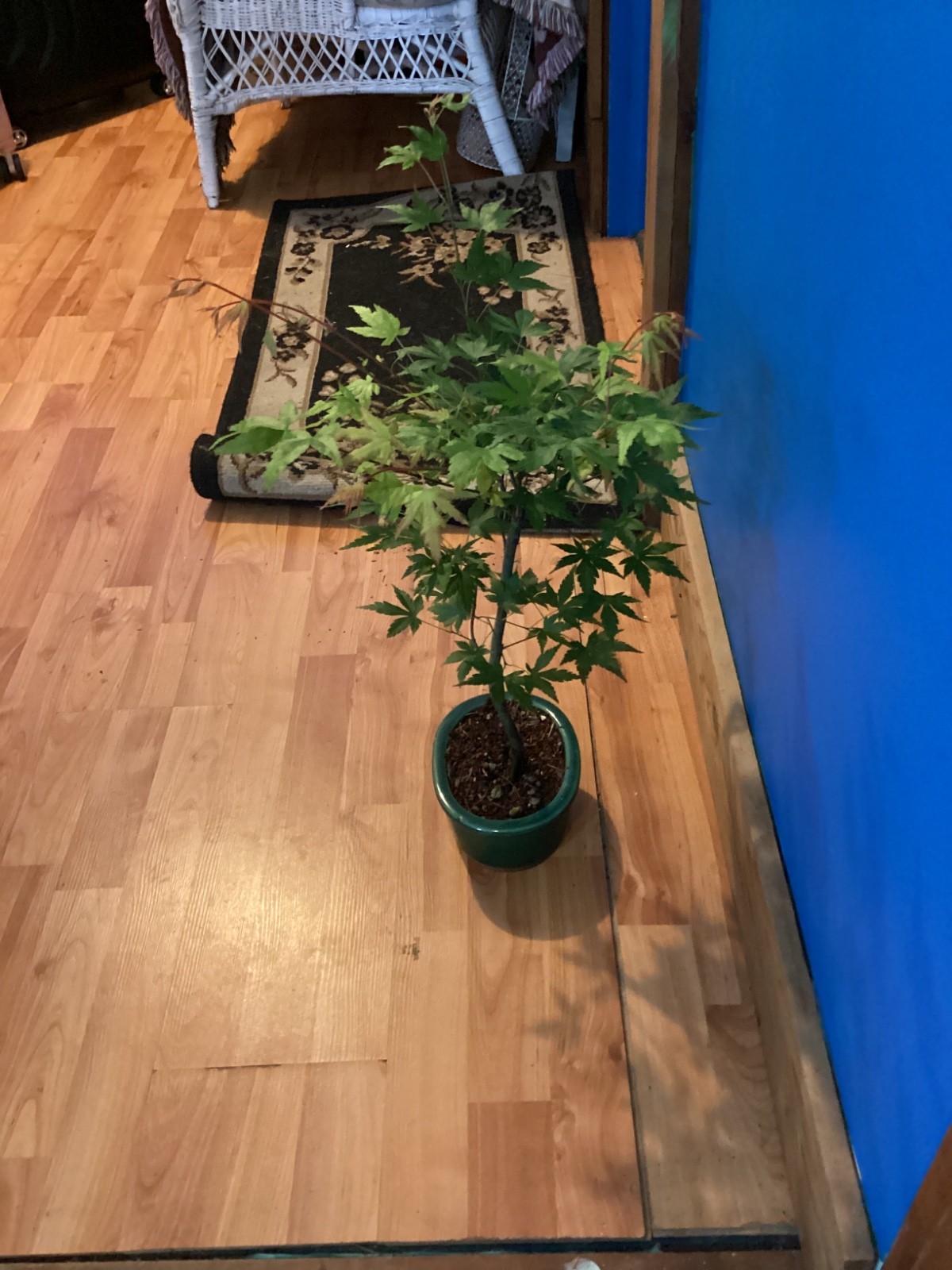 THIS IS AN BEAUTIFUL 5 YEAR OLD JAPANESE MAPLE ACER PALMATUM BONSAI TREE. POT SIZE 7X5 1/2 Oval shape, tree and pot height = 24 Inches, tree height= 21 inches, tree width = 21 X 18, trunk measures 3/4 inch, root base measures 3 inches.