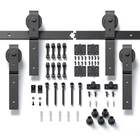 Description : This sliding wooden door hardware kit is made of high-quality steel and is coated with black powder to ensure corrosion resistance and durability. High strength industrial grade tracks and pulleys can easily withstand 300 pounds of load provides a smooth and sturdy rolling performance. Features [Easy to Install]: We provide step-by-st e p graphic and text instruction. It is very easy for you to take a reference during the installation. [Widely Used]: The barn door hardware kit comes with 2 kinds of wall fastener, expansion screws are used for cement walls, ordinary screws are used for wood walls and cabinets, etc. [Space saving]: The barn door is operated by sliding rails, which can save more space compared to traditional door opening methods. It is particularly suitable for small units or situations that require maximum space utilization Details Fit door width up to 56'';Fit Door Thickness 1-1/4" ~ 1-3/4" The height from top of the door to the top of the roller is 6"; The gap between door and wall is about 5/8"; 1, 2.5ft rail ×2: which is made of carbon steel, provides a smooth and sturdy rolling performance. 2, Spacers×3 or 5 , used to keep space between the wall and the rail. 3, Rollers×2 or 4, made of carbon steel hanger and nylon wheel with ball bearing makes your door moving stably and in low noise. 4, hinges×2 or 4 5, Rotating shaft and all hardware fasteners×1 Customer questions & answers Q: How much space do i need to keep from ceiling to doorway? A: At least 6" Q:My door is in thickness of 1-3/8",how can i fit it with the existing bolt ? A:you can use the 1/5" black shim we put in package for roller bolt,then your door will be fit perfectly. Q:Can i cut my rail to fit my space ? A: Yes ,Track can be cut into any length to meet your own require