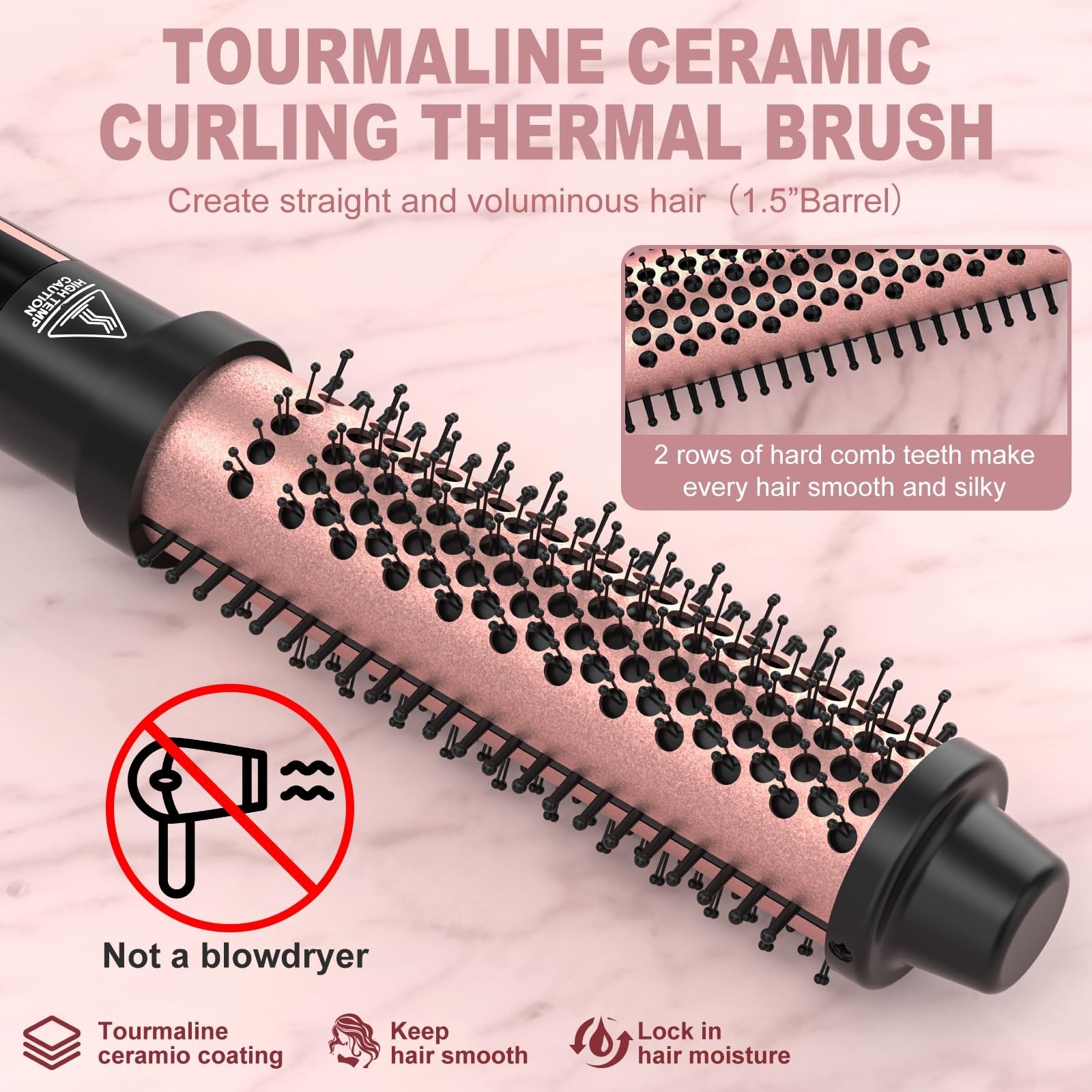 5 in 1 Curling Wand Set, Curling Iron with Curling Brush,Hair Straightener & 3 Interchangeable Ceramic Curling Wand(0.35"-1"), Fast Heat Hair Wand Curler, Include Glove & 2 Clips for Women Girls Gift Product Details Product Benefits: Hair Styling Shape: Barrel Brand: Amgcive Hair Type: All Material: Ceramic, Plastic Product Dimensions : 8 x 3 x 3 inches; 1.94 Pounds Date First Available : March 8, 2025 Manufacturer : Amgcive Country of Origin : China Best Sellers Rank: #341,998 in Beauty & Personal Care (See Top 100 in Beauty & Personal Care) #651 in Hair Curling Wands #651 in Hair Curling Wands Customer Reviews: 3.8 3.8 out of 5 stars 33 ratings Create Any Hairstyle Instantly with 5 Tools in 1: Unleash your creativity with Amgcives 5-in-1 styling set! Featuring a 1.5" Curling Brush, 1" Straightener, 0.35-0.7" Tapered Iron, 1" Bubble Barrel, and 0.4" Curling Iron, this kit lets you craft sleek straight locks, bouncy curls, or beachy waves effortlessly. Perfect for beginners and pros alike Swap Barrels in Seconds No Fuss, No Mess: Change styles in a flash with Amgcives easy-swap barrel system. Simply align, twist, and lock your chosen barrel into place. To switch, pull the lock catch and snap in a new one. Includes protective gloves for safe, seamless styling every time 2-in-1 Magic: Straighten & Curl with One Tool: Why settle for one tool when you can have both? The ceramic-coated straightener delivers smooth, shiny results, while the interchangeable curling barrels create everything from tight ringlets to loose waves. One tool, endless possibilities for stunning hair Fast Heat & Smart Control for All Hair Types: Ready in just 15 seconds with advanced PTC heating technology, Amgcives curling iron offers two temperature settings (302F for fine hair, 410F for thick hair) for precise, damage-free styling. Achieve salon-quality looks at home with ease Travel Anywhere, Style Everywhere: Compact, dual-voltage (100V-240V), and packed with safety features like overheating protection and anti-scald gloves, this set is your perfect travel companion. Create gorgeous hairstyles on the go and turn heads wherever you are