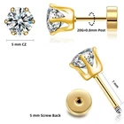 These 5mm Round CZ Flat Back Earrings are Plated in 14K Yellow Gold and are perfect to wear all day and all night! Gold Hypoallergenic Stud Earrings: We make our flat back earrings from 316L stainless steel and 14K gold plated, so they don't rust, allergic or tarnish. so they're safe for sensitive skin and healing piercings Small stud earrings made of 316L surgical steel material,AAA+ Cubic Zirconia inlaid,vacuum-plated with 14K gold,nickel-free & lead-free,no rust & tarnish.Hypollergic earrings for sensitive ear Small Screw Back CZ Cartilage Piercing Jewelry.The earring posts 0.8mm are threaded and feature a safety screw back design to ensure your child's earring backs stay safely in place at all times,wear as nap earrings