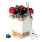 Stylish and Elegant These fashionable mini dessert cups offer a simple way to make your desserts look professional. Their sleek, modern design and crystal clear premium plastic enhance the look of any delectable dessert, hors d'oeuvres or appetizers you serve. From chocolate mousse to puddings, parfaits, jello shots, tiramisu, cheesecakes and more, these dessert shooters add a major "wow" factor to all your culinary creations. Super Easy to Use These quick, convenient 5 oz dessert samplers are perfectly sized. Ready in seconds; simply fill and serve. Our dessert shot glasses are perfect for parties, weddings, mitzvahs, engagement parties, family gatherings, BBQs, dinners, reunions, confirmations, baby showers, and more! Recyclable or Reusable Dispose of these 100% recyclable serving cups worry-free after your party, or simply wash and stack them for later events. Bon Appetit! We know you'll love 's 20 Mini Plastic Dessert Cups with Spoons. Click "Add to Cart" and order today! "clear plastic dessert cups 5 oz. dessert cups dessert in a cup mini dessert cups with plastic cup dessert 5 oz dessert cups 5 oz dessert cup mini cups for dessert dessert shot glasses dessert in a cup clear dessert cups dessert shooter cups disposable dessert cups mini dessert cups with plastic dessert cups dessert cups dessert shooters" Enhance any Occassion - With these stylish and premium dessert shooter cups! These 5oz square plastic serving cups come with 20 spoons, everything you need to serve 20 guests. These small desert cups are perfect for breakfast, brunch, appetizers, and more! Durable and Elegant - 's premium and crystal clear hard plastic shot glasses 5oz have a solid, quality feel, and stand up to the needs of your party or gathering. The best part is, once your event is over, there are no dishes to do! Simply wash and reuse them, or dispose of them! Stylish & Cost Efficient - These clear 5oz plastic dessert cups are durable, quality products that cover your event's needs for serving people at a low, economical cost. perfect for Christmas parties, holiday celebrations, banquets, weddings, birthday parties, company gatherings, and other catered events. Recyclable or Reusable - Dispose of these 5oz square 100% recyclable serving cups worry-free after your party, or simply wash and stack them for later events. Satisfaction Guaranteed - stands behind all of its products 100%. We use strong durable packaging to guarantee that your mini plastic dessert cups arrive in the best condition possible.