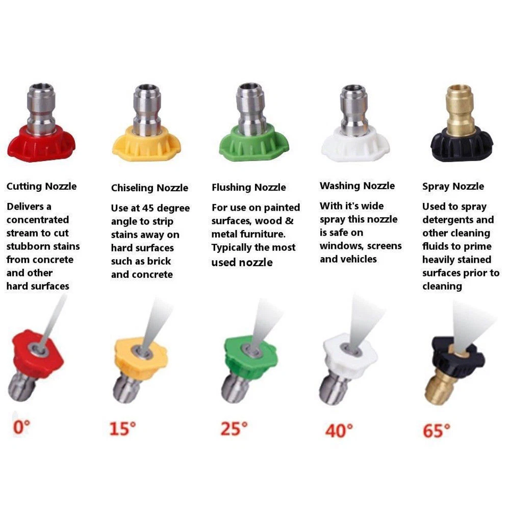 bead_us Store Home Shipping Payment Warranty and Guarantee Other Policies Hot sale Item Description Feature - 100% brand new and high quality - Material: Stainless, Copper - Hole Diameter: 1.0 mm / 0.04 inches Usage - Ideal for kinds of pressure washer - 5 different color nozzles with 1/4" quick connect attachment Max 3600 PSI - Can be used to replace damaged nozzles or to upgrade to a complete set - Made of high quality material, not easy to rust or oxidation - With various degree, meet your different needs - Easy to install and durable to use - Help you clean hard-to-reach areas easily Specification - Type: Car Foam Lance Gun - Material: Plastic + Brass - Quantity: 1pcs Color: White - Capacity: 1L - Maximum pressure: 300BAR(4350PSI), working 150BAR(2175PSI) - Max temp 60 Celsius Max Temp. 60 Celsius Nozzle Details - 0 Degree (Red, Stainless Steel, Concentrated Pencil Jet) High Pressure Nozzle - 15 Degree (Yellow, Stainless Steel, High Performance) High Pressure Dirt Removal - 25 Degree (Green, Stainless Steel, Multi-purpose) Lower Pressure Brick Cleaning etc. - 40 degree (White, Stainless Steel, Sensitive Surfaces) Common use Such As Car Cleaning etc. - Black Tip for Soap Item Pictures more Shipping 1.We ship to worldwide,except Hong Kong,Taiwan,Macao,China,Guemsey and we do not ship to APO/FPO, etc. 2.Item will be shipped within 3 business day on payment received. 3.Items are shipped from China using Airmail,reach most of countries within 10-20 business days. 4.sDelivery time depends on destination and other factors,it may takes up to 20 business days. Country Delivery Time Working Days(not including holiday day) 5-7 8-11 12-14 15-19 20-22 >22 Working Days+Saturday+Sunday 5-9 10-15 16-20 21-25 26-30 >31 United States Rate(Item arrived) 5.1% 50.1% 29.6% 10.5% 4.7% Refund United Kingdom Rate(Item arrived) 9.9% 63.2% 19.1% 3.4% 4.4% Refund Australia Rate(Item arrived) 21.4% 50.0% 14.3% 7.2% 7.1% Refund France Rate(Item arrived) 10.5% 28.6% 43.8% 10.1% 7.0% Refund Germany Rate(Item arrived) 11.1% 22.2% 30.3% 20.9% 15.5% Refund Canada Rate(Item arrived) 0.0% 47.1% 31.4% 17.6% 3.9% Refund Spain Rate(Item arrived) 3.5% 25.0% 47.9% 12.9% 10.7% Refund Payment 1.We accept Paypal only. 2.All major credit cards are accepted through secure payment processor PayPal. 3.Payment must be received with 7 days of auction closing 4.If you have bought multiple items from us,you can send us one payment for all the items instead of paying for them individually. When you click the Pay Now button,eBay will automatically determine if there are other items you have won of purchased from us and will combine them for your review. Warranty and Guarantee 1.One year warranty!30 days money back!Buy with confidence! 2.If you are not satisfied when you receive your item,please return it within 30 days for a replacement or money back.Please contact us before you return the item. 3.If item is defective in 3 months,we will send you a replacement without extra charger,or offer refund after we receive the defective item. 4.If item is defective after 3 months,you can still send it back to us.We will send you a new one after after receiving the defective item,but you have to pay the extra shipping fee. Other Policies 1.We are not responsible for any custom duty or import tax. 2.We will leave Positive Feedback after receiving the payment.Please contact us if you are not satisfied with the item after receiving it. 3.All emails will be answered within 1 business day.If you do not receive our reply,please kindly re-sent your email and we will reply you as soon as possible. 4.Serious Buyer Only!Please place bid only if you agree with all the terms.