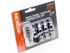 This set of quick connect couplers is suitable and compatible with most air tools. Wokin five pieces air tool connectors are made of high quality materials and built to handle toughest jobs and withstand harsh working environments. Constructed of high strength steel, the quick coupler is rated for 300 PSI. Features: Made of high quality strength steel, chrome plated Made to last, designed for industrial, commercial use Suitable for use with most 60-150PSI pneumatic garage power tools Stainless steel balls and springs maximize corrosion resistance A tubular valve is standard for all body sizes for improved flow Specifications: Brand: Wokin Model: 843905 Made of strength steel Chrome polished Working pressure: 150PSI Maximum working pressure: 300PSI Tread type: female, male 1/4in 18 NPT Large coupler nut size: 3/4in or 19mm Small coupler male thread nut size: 9/16in or 14mm Small coupler female thread nut size: 5/8in or 16mm Large coupler length: 1.9in or 48.5mm Small coupler male thread length: 1.5in or 39.5mm Small coupler female thread length: 1.7in or 43.5mm Large coupler width: 0.9in or 23mm Small coupler width: 0.7in or 18mm Weight: 6.8oz or 192g Package includes: Master quick connect air hose coupler with female thread Female thread to 1/4 inch quick connect male connector Three male thread to 1/4 inch quick connect male connectors Pictures sell! Auctiva offers Free Image Hosting and Editing. The complete eBay Selling Solution. Track Page Views With Auctiva's Counter