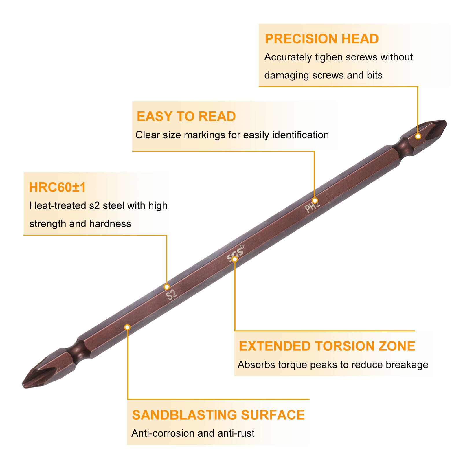 2pcs PH2 Magnetic Double-End Phillips Screwdriver Bit 4.72in 6.35mm Rod
