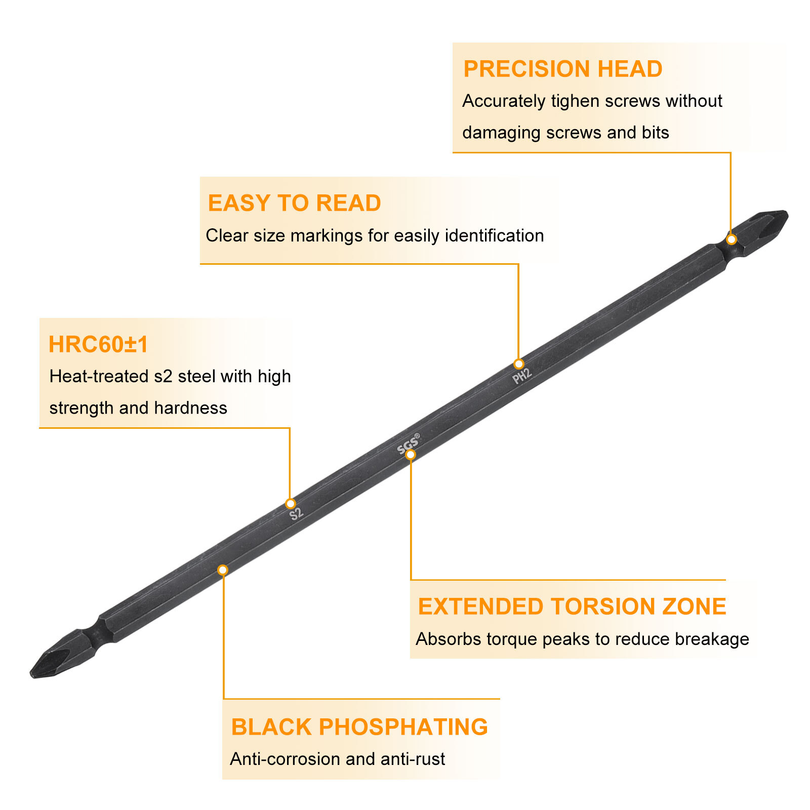 Document The double ended Phillips screwdriver bits are made of heat-treated S2 steel with high strength and hardness(HRC60-62), durable and anti-bending, and the surface is sandblasting and black phosphating treatment for enhanced grip and corrosion resistance.The two sided screwdriver bits are designed with strong magnetism, which can stably absorb the screws vertically or tilted and easily fix the screws, especially in a small space, which can make it more convenient to complete the work.Cross head drill bit specifically designed for driving screws into wood, metal, and other materials effortlessly. Can accurately tighten screws without damaging screws and screwdriver bits.1/4" hex shank driver bits can be used with electric screwdrivers, manual screwdrivers, electric drills, etc. for electricians, mechanical repair work, and furniture installation.Make sure the screwdriver bit is firmly inserted into the power tool chuck before operation. Avoid using excessive forces when tightening the screws to prevent the bit from being damaged or slipping out. Store the screwdriver bit in a dry place to prevent rust and maintain its performance. 5pcs PH2 Magnetic Double Ended Phillips Screwdriver Bit 7.87" Length, Black The double ended Phillips screwdriver bits are made of heat-treated S2 steel with high strength and hardness(HRC60-62), durable and anti-bending, and the surface is sandblasting and black phosphating treatment for enhanced grip and corrosion resistance. The two sided screwdriver bits are designed with strong magnetism, which can stably absorb the screws vertically or tilted and easily fix the screws, especially in a small space, which can make it more convenient to complete the work. Cross head drill bit specifically designed for driving screws into wood, metal, and other materials effortlessly. Can accurately tighten screws without damaging screws and screwdriver bits. 1/4" hex shank driver bits can be used with electric screwdrivers, manual screwdrivers, electric drills, etc. for electricians, mechanical repair work, and furniture installation. Make sure the screwdriver bit is firmly inserted into the power tool chuck before operation. Avoid using excessive forces when tightening the screws to prevent the bit from being damaged or slipping out. Store the screwdriver bit in a dry place to prevent rust and maintain its performance. Hot Item Payment 1.We accept eBay payment . 2.Payment must be received within 7 business days of auction closing. Shipping 1.We ship to your eBay or Paypal address. Please make sure your eBay and Paypal address is correct before you pay. 2.Items will be shipped within 1-3 business day when we received payment. 3.Delivery time depends on destination and other factors. Description Policy 5pcs PH2 Magnetic Double Ended Phillips Screwdriver Bit 7.87" Length, Black The double ended Phillips screwdriver bits are made of heat-treated S2 steel with high strength and hardness(HRC60-62), durable and anti-bending, and the surface is sandblasting and black phosphating treatment for enhanced grip and corrosion resistance. The two sided screwdriver bits are designed with strong magnetism, which can stably absorb the screws vertically or tilted and easily fix the screws, especially in a small space, which can make it more convenient to complete the work. Cross head drill bit specifically designed for driving screws into wood, metal, and other materials effortlessly. Can accurately tighten screws without damaging screws and screwdriver bits. 1/4" hex shank driver bits can be used with electric screwdrivers, manual screwdrivers, electric drills, etc. for electricians, mechanical repair work, and furniture installation. Make sure the screwdriver bit is firmly inserted into the power tool chuck before operation. Avoid using excessive forces when tightening the screws to prevent the bit from being damaged or slipping out. Store the screwdriver bit in a dry place to prevent rust and maintain its performance. Hot Item Payment 1.We accept eBay payment . 2.Payment must be received within 7 business days of auction closing. Shipping 1.We ship to your eBay or Paypal address. Please make sure your eBay and Paypal address is correct before you pay. 2.Items will be shipped within 1-3 business day when we received payment. 3.Delivery time depends on destination and other factors.