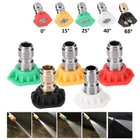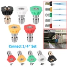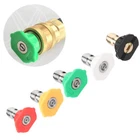 5pcs Pressure Washer Spray Tips Nozzles High Power Kit Quick Connect 1/4" Set 5Pcs Pressure Washer Spray Nozzle Tips 1/4 Quick Connect Design 2.5-4.0 GPM Features: *High Quality & 100% Brand New. *Perfect for All Brand of Pressure Washers. *Pressure Washer High Pressure 5 Pack Color Coded Nozzles with 1/4" Quick Connect attachment Max 3600 PSI. *Clean easily-- Allows you to clean hard-to-reach areas quickly and easily without a ladder. *Use to Replace Damaged Nozzles or to Upgrade to a Complete Set. *Different spray angle-- you can choose different angles spray nozzle according to the actual needs. -0 Degree (Red, Stainless Steel, Concentrated Pencil Jet) High Pressure Nozzle (Cutting Nozzle,used to deliver a concentrated stream to cut stubborn stains from concrete and other hard surfaces.) -15 Degree (Yellow, Stainless Steel, High Performance) High Pressure Dirt Removal (Chiseling Nozzle,used at 45°to strip stains away on hard surfaces such as brick and concrete.) -25 Degree (Green, Stainless Steel, Multi-Purpose) Lower Pressure Brick Cleaning etc. (Flushing Nozzle, used on painted surfaces,wood and metal furniture.Typically the most used nozzle) -40 degree (White, Stainless Steel, Sensitive Surfaces) Common use Such As Car Cleaning etc. (Washing Nozzle,used on windows,screens and vehicles with its wide spray ) -65°(Black,Brass, Soap Soaker Tip) (Brass,Spray Nozzle,used to spray detergents and other cleaning fluids to prime heavily stained surfaces prior to cleaning.) Specifications: Quantity:5pcs Materials:Brass+Stainless Steel+Rubber Color:0° Red Tip /15°Yellow Tip /25°Green Tip /40°White Tip /65°Black Soap Tip Size :1/4 Nozzle Set Max Pressure: 3600 PSI/ 250bar Package includes: 1 x Red Stainless Steel Tip (0°) 1 x Yellow Stainless Steel Tip (15°) 1 x Green Stainless Steel Tip (25°) 1 x White Stainless Steel Tip ( 40°) 1 x Black Brass Tip(65°for soap) Payment Delivery details About us Contact us Payment Please send the payment soon, then we can ship out your order soon. Delivery details Shipped by USPS from NJ, US About us muchl_95 is a online wholesale seller for all kinds of electronic accessories. We carry a wealth of consumer electronic accessories, such as computer peripherals, laptop accessories, game consoles accessories, cell phones accessories, digital cameras accessories and other electronic. Contact us Any question, welcome to contact us.