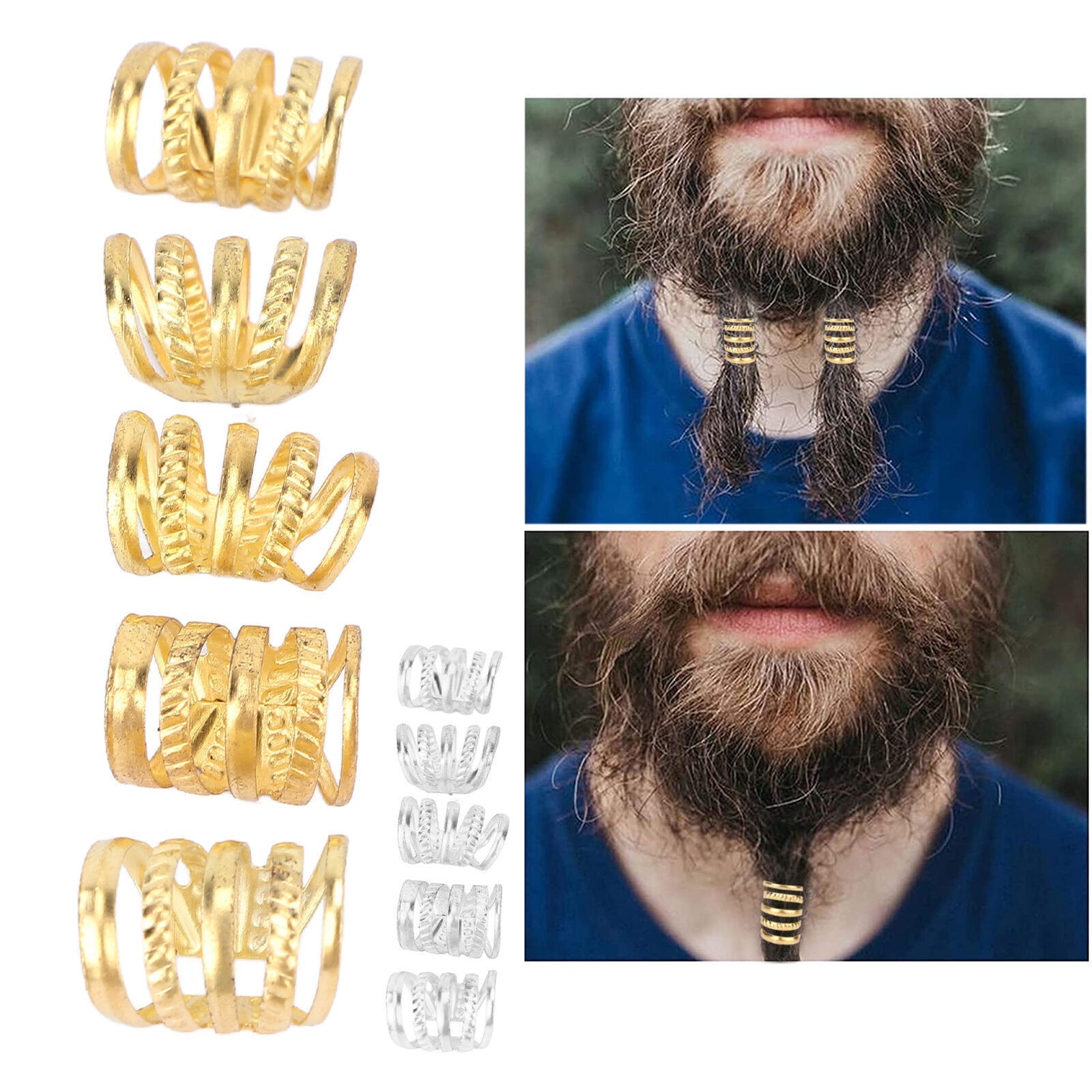 Feature: 1. Sturdy Material: The beard rings are made of high quality metal material, not easy to rust, they are durable and can serve you for a long time. 2. Exquisite Design: The size is suitable for your beard, and it can perfectly match your hair and beard. 3. Wide Applications: Viking hair beard beads, suitable for both men and women, for braids, ponytails and weddings, role playing and daily use. 4. Multifunctional Uses: The beard beads can be used for hair and beard weaving, eye catching hair accessories. 5. Retro Style: Full of retro style, making your appearance more gentle and beautiful. These beard dreadlocks are good gifts for yourself. Specification: Item Type: Spring Hair Beads Material: Metal Quantity: 5pcs Package List: 5 x Spring Hair Beads