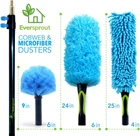 DUSTER 3-PACK COMBO, HAND-PACKAGED, NO SMASHED BRISTLES, WASHABLE FOR REUSE – Includes: Cobweb Duster (Medium-Stiff Bristles), Microfiber Feather Duster (24”), Flexible Ceiling Fan Duster (25”). Dusters are Hand-Packaged in San Luis Obispo, CA to ensure dusters are big and full, not smashed. Cob Web Duster and Feather Duster can be hand-washed in a sink with cool to warm water (let air dry). The Ceiling Fan Duster Sleeve is removable for the washing machine (cool to warm water and let air dry). SAVE TIME, SKIP THE LADDER - REACH UP TO 20+ FEET WHEN STANDING – Included is an Extension Pole (4.5 to 12 ft), Cobweb Duster, Feather Duster, and Ceiling Fan Duster. All dusters twist onto the 3-Stage Aluminum Extension Pole & extends to any custom length from 5-to-14 Feet. Reach up to 20+ feet when standing. ARRIVES FLAT, BENDABLE TO ANY SHAPE, ELECTROSTATIC MICROFIBER ATTRACTS DUST – Both the Feather Duster and Ceiling Fan Duster arrive flat, and can be bent to any shape so you can clean and conquer those hard to reach areas! Each Microfiber has a slight positive charge and is so tiny it’s 100 times finer than a human hair – this enables the Microfiber Ceiling Fan Duster and Microfiber Feather Duster to attract, grab, and trap dust. Perfect for cleaning blinds, high ceiling fans, cob webs, & more! THE ULTIMATE EXTENSION POLE ON THE MARKET TODAY – Lightweight Aluminum pole weighs only 1.5 pounds and is very sturdy. Non-Slip Foam Hand Grips for comfort and reliable grip in wet conditions. Frustration Free Flip-Tab Locking Mechanism means NO SECTIONS GETTING STUCK like traditional twist-lock poles, AND allows any custom length between 4.5 and 12 ft. 3/4” Acme Thread Pole Tip is made of metal alloy for durability Color Blue, Black Recommended Uses For Product Blind, Fan, Light Fixture, Furniture, Picture Frame Special Feature Lightweight Handle Material Aluminum Head Material Polyester Item Weight 1.5 Pounds Product Care Instructions Machine Wash Item Firmness Description Soft