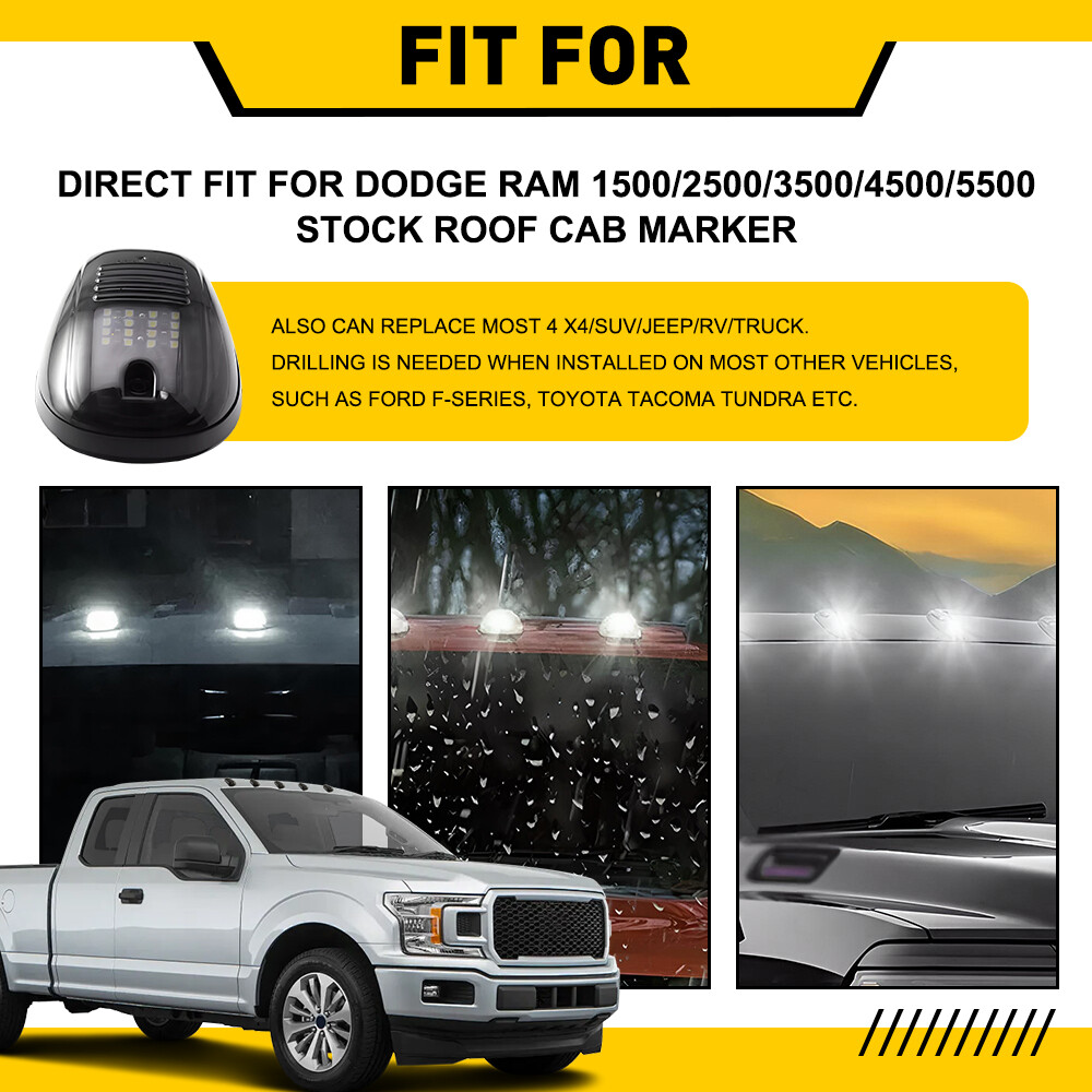 Fit for: Direct fit for Dodge Ram 1500/2500/3500/4500/5500 stock roof cab marker Also Can replace most 4 x4/SUV/Jeep/RV/Truck. Drilling is needed when installed on most other vehicles, such as Ford F-Series, Toyota Tacoma Tundra, etc. Specifications: Lens Color: Smoked Light Color: White LED Quantity: 16LED/per Wiring: Black wire: the negative pole Red wire: the positive pole Suitable Voltage: 12-24V Waterproof Grade: IP68 Service Life: 50,000h+ Features: *High Brightness Super bright LED bulbs, improve driving safety when driving at night. *Excellent Material 5x Smoked Lens Rooftop Cab Running white Light 6000K Dodge for RAM 1500 2500 Fit for: Direct fit for Dodge Ram 1500/2500/3500/4500/5500 stock roof cab marker Also Can replace most 4 x4/SUV/Jeep/RV/Truck. Drilling is needed when installed on most other vehicles, such as Ford F-Series, Toyota Tacoma Tundra, etc. Specifications: Lens Color: Smoked Light Color: White LED Quantity: 16LED/per Wiring: Black wire: the negative pole Red wire: the positive pole Suitable Voltage: 12-24V Waterproof Grade: IP68 Service Life: 50,000h+ Features: *High Brightness Super bright LED bulbs, improve driving safety when driving at night. *Excellent Material Made of high-quality ABS light shell to ensure long-lasting, it is not easy to fade. *IP68 Waterproof Grade High-strength waterproof (IP68) can adapt to outdoor bad weather. *Driving Safety Improve visibility at night, foggy days, heavy rain and snow, or other extreme conditions. *Stable Performance The cab roof light with stable performance provides a better shopping experience for you. Packaging Include: 5pcs Roof lamp light 10pcs Screw 1pc Extension Line 1pc Switch Button Item Specifics Brand AUXITO Features Sealed Assembly Type Marker Lights Lens Color smoked Universal for For Dodge Ram 1500 2500 3500 Manufacturer Warranty 2 Years Waterproof IP67 Easy & Hassle Free Returns Yes, Free Return Fitment Type Direct Replacement light color White Connection mode Black wire Red wire Led quantity 16LED/per Waterproof grade IP68 Service life more than 50000h Suitable Voltage 12-24V Service Life 50,000h+ Packaging Include1 5pcs Roof lamp light 10pcs Screw Packaging Include2 1pc Extension Line 1pc Switch Button Interchange Part Number Built with 16 LED inside the smoke Superseded Part Number 15599040, 15691885, 8C34-15442-CB Other Part Number DOT Approved Truck LED Parking Position Lamp Placement on Vehicle Front Payment We accept PayPal via eBay Secure Check-Out only. Immediate payment needs to be processed for items with Add to Cart option so that any promotional discounts can be applied to your order immediately. Shipping 1 .We do everything we can to ship your orders out as soon as possible. 2. Shipping and Handling: We process orders within two business day after the payment was clear. Returns Our 30-day Satisfaction Guarantee assures our customers that they will receive all orders promptly and exactly as described. In addition, it allows customers to return new and unused products in their original factory condition for any reason within 30 days from the date of purchase. 1. All returns must be pre-approved by AUXITO and have a return merchandise authorization(RMA) number. Unauthorized returns will not be accepted. 2. Buyers are responsible for appropriate packing, returning shipping cost, insurance and returning the item in "new" condition. Used items will not be accepted for return. 3. We will replace the returning item with an identical item, issue a full store credit or a full refund. Contact Us Our Working Time:(GMT+8)Monday to Friday,9:00-18:00. For inquires and customer support, please send your email via ebay email system. All emails will be responded to within 24 hours during business days. Feedbacks 1. We appreciate your business and strived to improve our customer service and our commitment to quality. 2. We will leave a positive feedback immediately after payment is received. We appreciate a positive feedback as much as you do. 3. If for some reason there is any issue with the purchase, please contact us prior to leaving feedback, and we will be glad to work with you to have it resolved. DESCRIPTION PAYMENT SHIPPING RETURN POLICY CONTACT US Hot Item 146PCS For Toyota RAV4 Fender Door Hood Bumper Trim Clip Retainer Fastener Kit USD 10.92 Fit For 2015-2019 Hyundai Center Light Gray Sonata Armrest Console Lid Cover USD 13.29 190 PCS Bumper Fender Moulding Side Garnish Grille Retainer Clip ABS Various USD 10.44 Universal Motorcycle License Plate Tag Holder Tail Rear Lamp Mount Bracket Black USD 9.49 4" Red Truck Long Performance High Flow Cold Air Intake Cone Dry Filter Cotton USD 27.54 Hot Item Universal Motorcycle License Plate Tag Holder Tail Rear Lamp Mount Bracket Black USD 9.49 190 PCS Bumper Fender Moulding Side Garnish Grille Retainer Clip ABS Various USD 10.44 146PCS For Toyota RAV4 Fender Door Hood Bumper Trim Clip Retainer Fastener Kit USD 10.92 4" Red Truck Long Performance High Flow Cold Air Intake Cone Dry Filter Cotton USD 27.54 Fit For 2015-2019 Hyundai Center Light Gray Sonata Armrest Console Lid Cover USD 13.29 5x Smoked Lens Rooftop Cab Running white Light 6000K Dodge for RAM 1500 2500 Fit for: Direct fit for Dodge Ram 1500/2500/3500/4500/5500 stock roof cab marker Also Can replace most 4 x4/SUV/Jeep/RV/Truck. Drilling is needed when installed on most other vehicles, such as Ford F-Series, Toyota Tacoma Tundra, etc. Specifications: Lens Color: Smoked Light Color: White LED Quantity: 16LED/per Wiring: Black wire: the negative pole Red wire: the positive pole Suitable Voltage: 12-24V Waterproof Grade: IP68 Service Life: 50,000h+ Features: *High Brightness Super bright LED bulbs, improve driving safety when driving at night. *Excellent Material Made of high-quality ABS light shell to ensure long-lasting, it is not easy to fade. *IP68 Waterproof Grade High-strength waterproof (IP68) can adapt to outdoor bad weather. *Driving Safety Improve visibility at night, foggy days, heavy ra