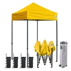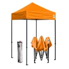 Eurmax USA 5'x5' Ez Pop Up Canopy Tent Commercial Instant Canopies with Heavy Duty Roller Bag,Bonus 4 Sand Weights Bags Product Description Eurmax 5x5 Pop up Canopy Features 5x5 Canopy Tent Top Cover Fabric: Stitching lines are all seam sealed to prevent water penetrate from seams. Steel D Rings on each corner,easy to use a rope to secure your canopy. Velcro Straps with Truss Muscle on each valance to keep the canopy stick on the frame. 5x5 Sturdy Commercial Canopy Tent Frame: Strong Full truss structure design. Hammertone powder coated rush resistance steel frame with thick square shaped legs. 5x5 Canopy Tent Roller Bag: Eurmax unique L shaped roller bag is easy to put frame and top in the bag. Reinforced base plate with heavy-duty zipper and big 2.7" diameter easy glide wheels. Extra pockets for additional items, 1680D super strong polyester, 2 layer fabric sewed, reinforced handles, all these makes the bag long lasting. Package Include 1X 5x5ft pop up canopy instant tent frame with 1X 1680D heavy duty roller carry bag. 1X 5x5ft durable 500D polyester pop up canopy top 4XSand Bags