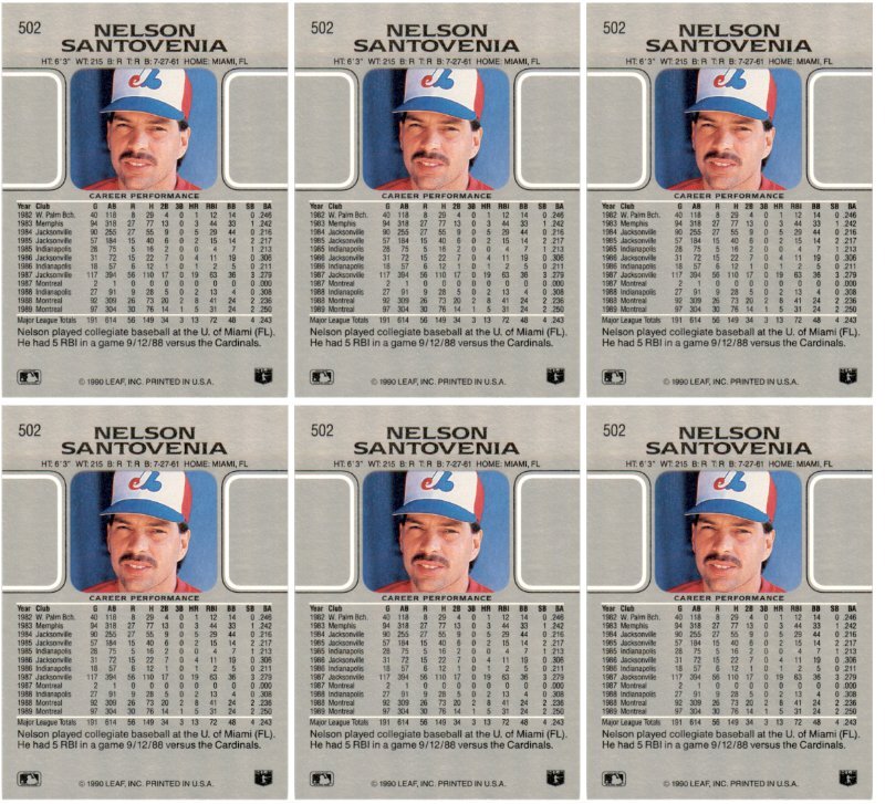 (6) 1990 Leaf #502 Nelson Santovenia Montreal Expos Card Lot Condition: NM-MT